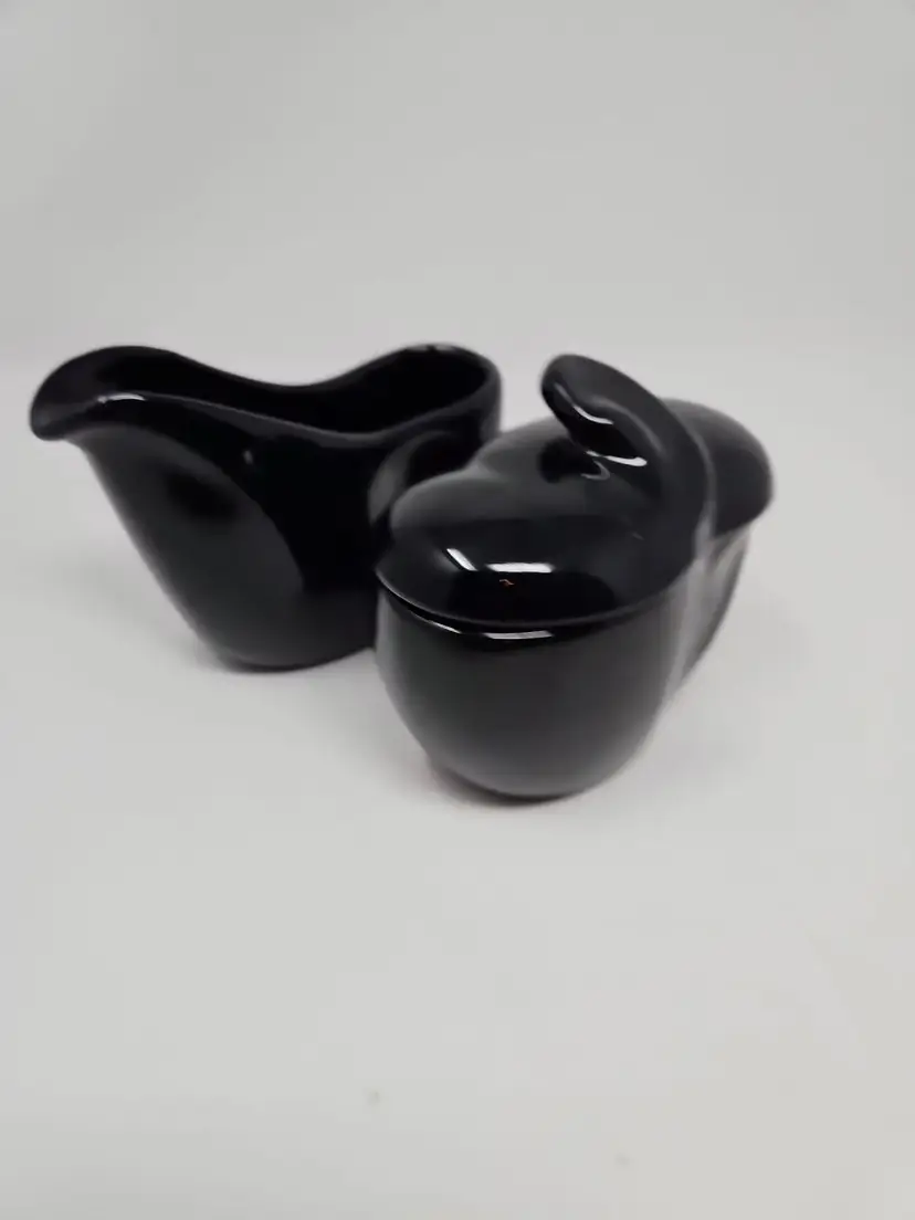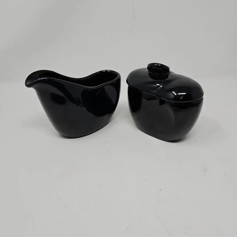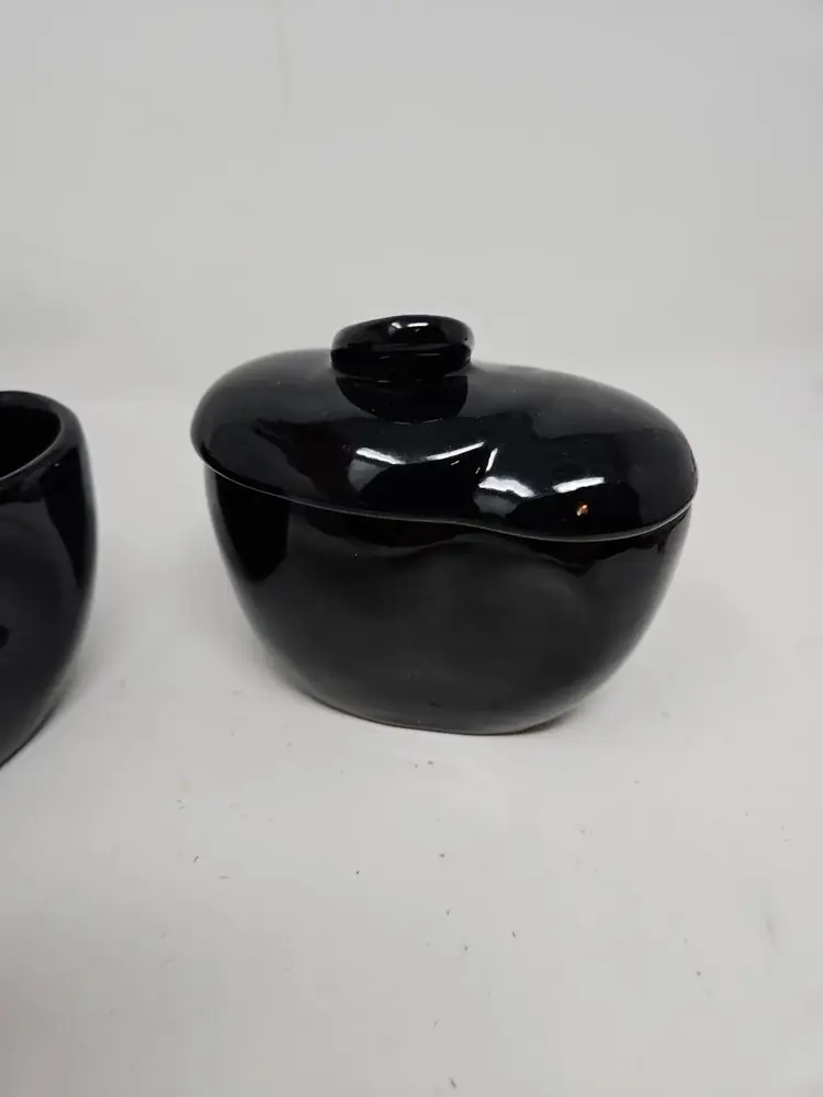 Frankoma Lazy Bones sugar and creamer set in black. Model 4A and 4B in great used condition with no chips or cracks