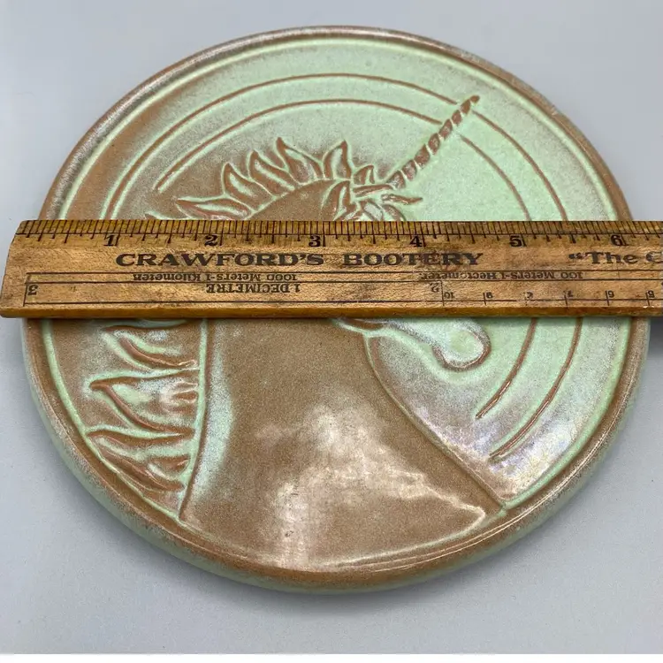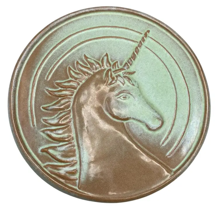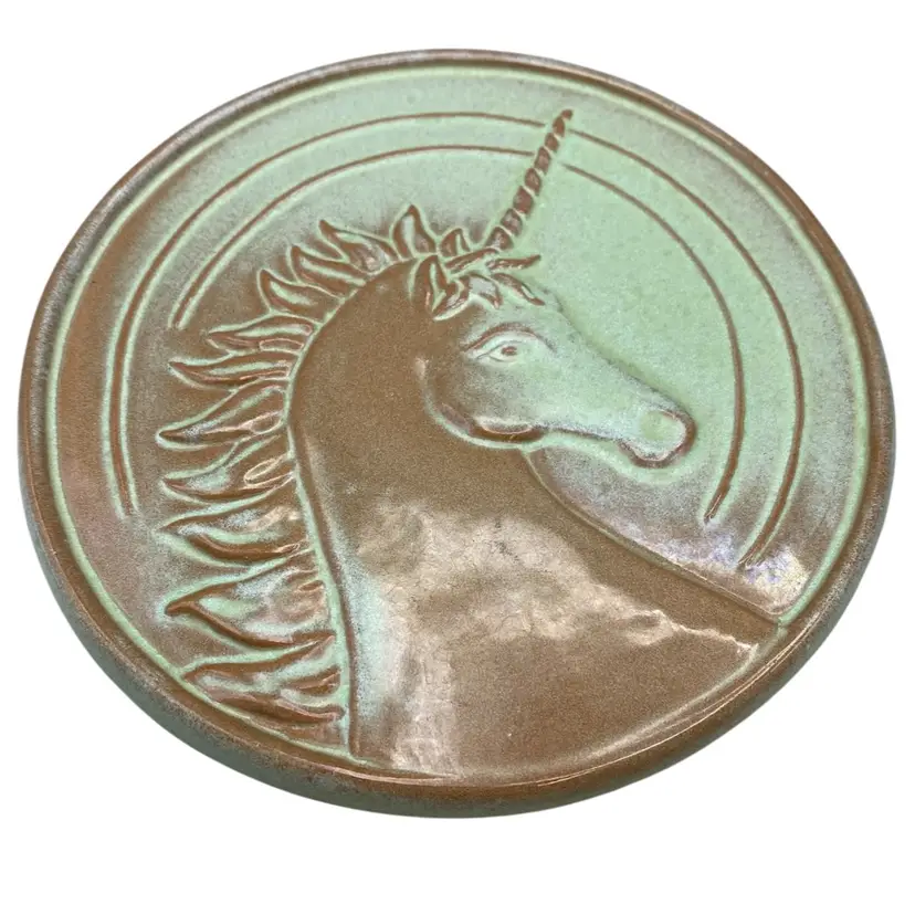 Frankoma Pottery Unicorn Trivet Green Brown Vintage Retro