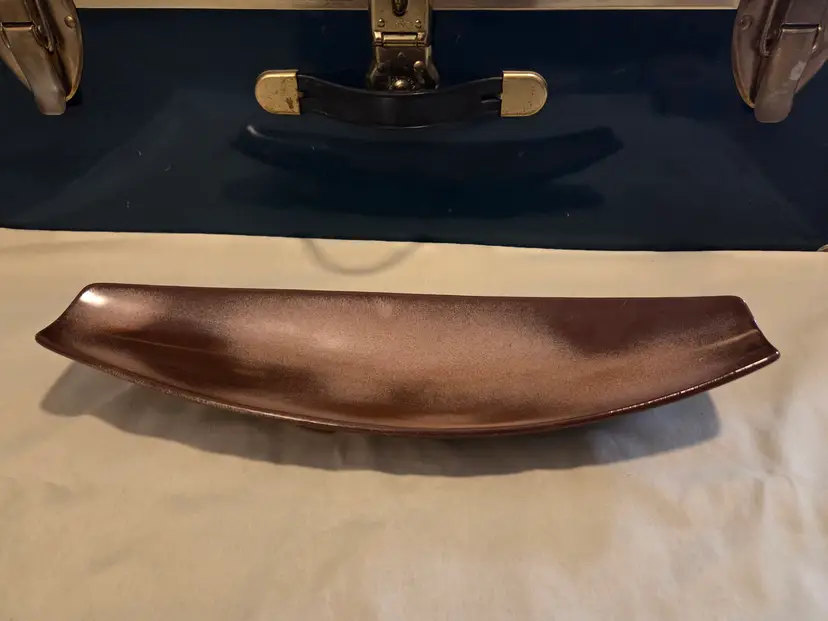 Add a touch of mid-century elegance to your table with this sleek vintage brown ceramic serving tray. Perfect for showcasing appetizers or as a stylish centerpiece.
