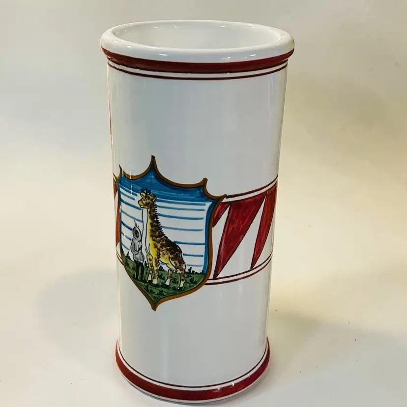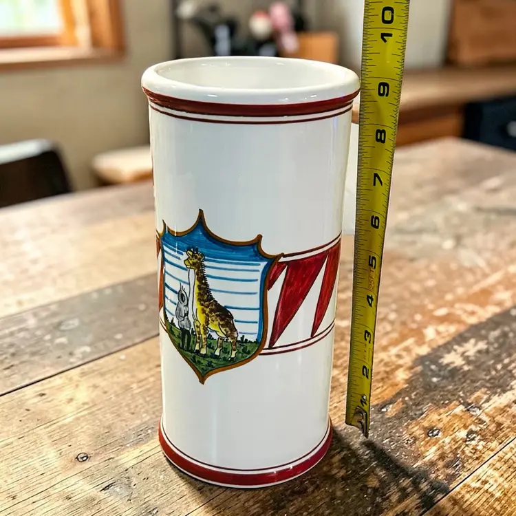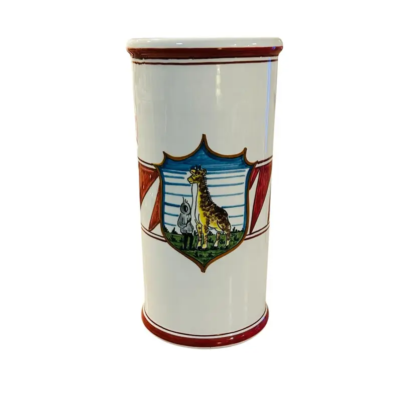 Fun and quirky design of a moor leading a giraffe. It can function as a wine chiller (as designed) but also works great as a kitchen utensil holder or even a vase. It is in excellent used condition.