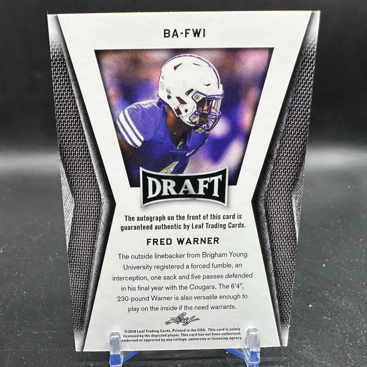 Fred Warner Auto Rookie 2018 Leaf Draft Autographs BYU Cougar 49ers