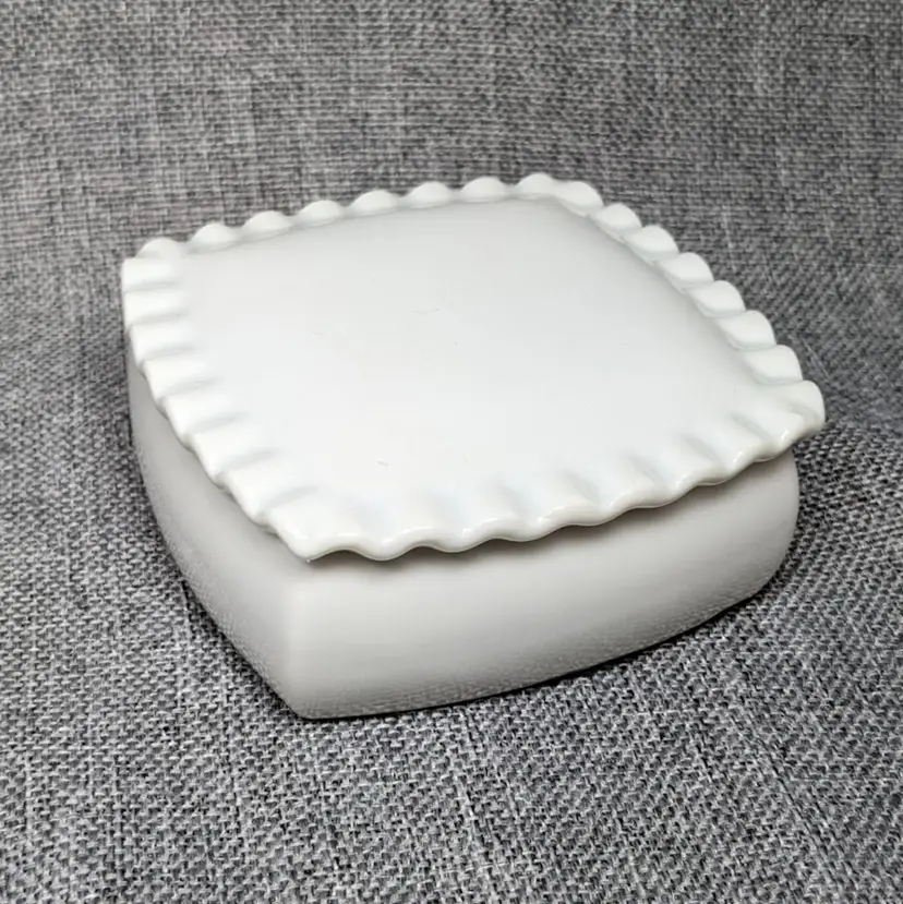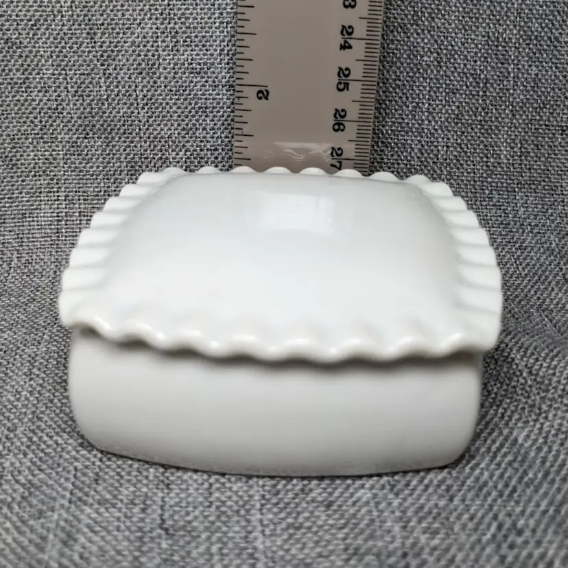 Approx 3.25 " x 3.25" x 1.25". No chips or cracks.