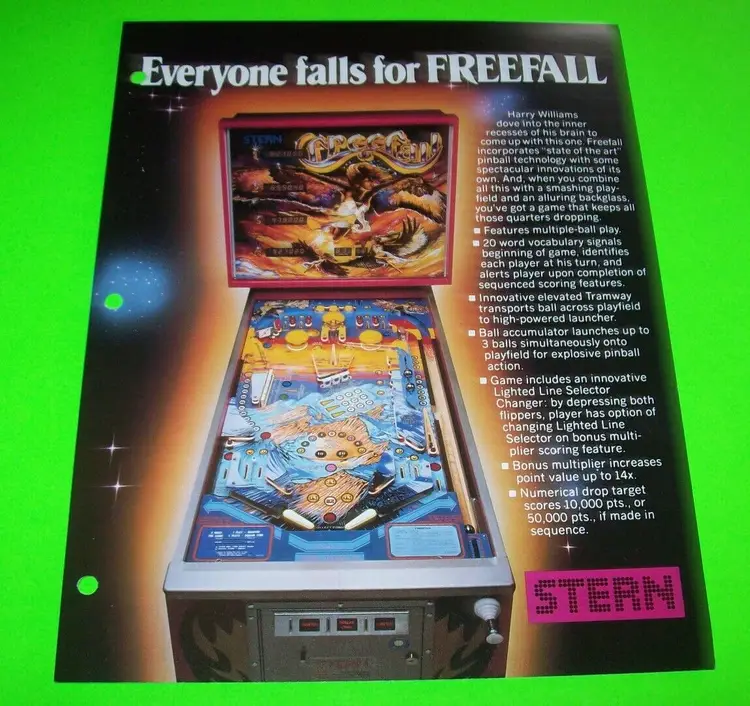 Model: Free Fall Original: Paper Sales Flyer Modified Item: No Country/Region of Manufacture: United States Year: 1981 Brand: Stern Pinball: Flyer