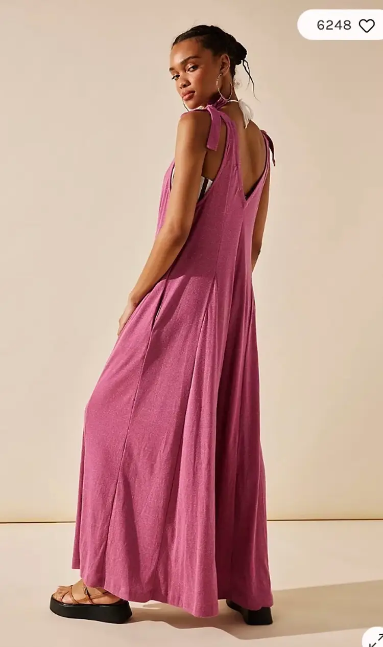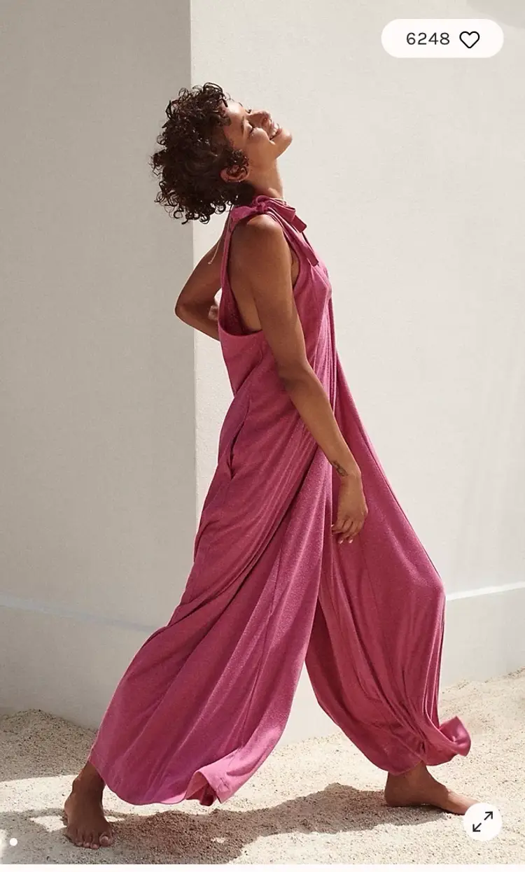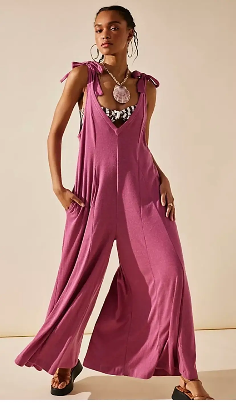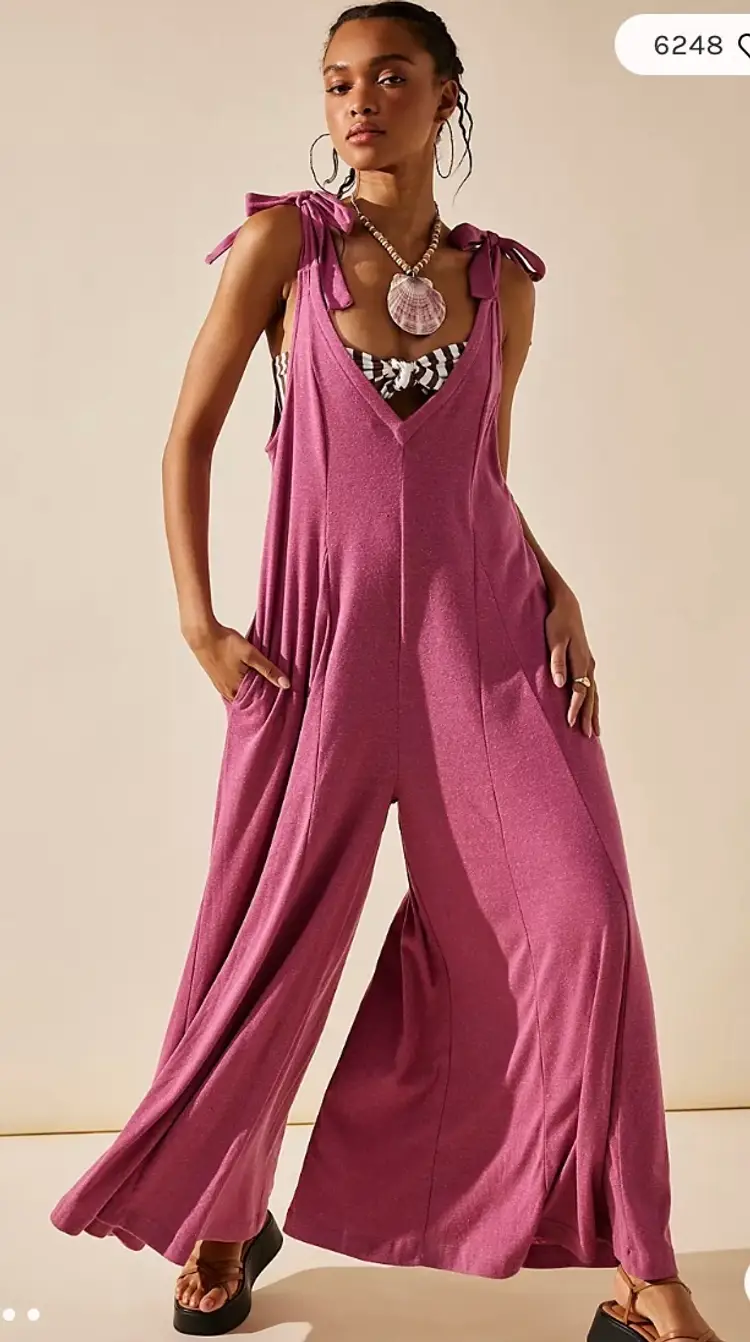 Fit: Relaxed, shapeless silhouette Features: V-neckline, billowy wide-leg design, tie shoulder straps, side pockets, dropped armholes Why We <3 It: The definition of cozy chic, pair this with beachy sandals or layer it over a chunky sweater for endless ways to wear.