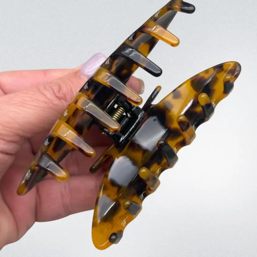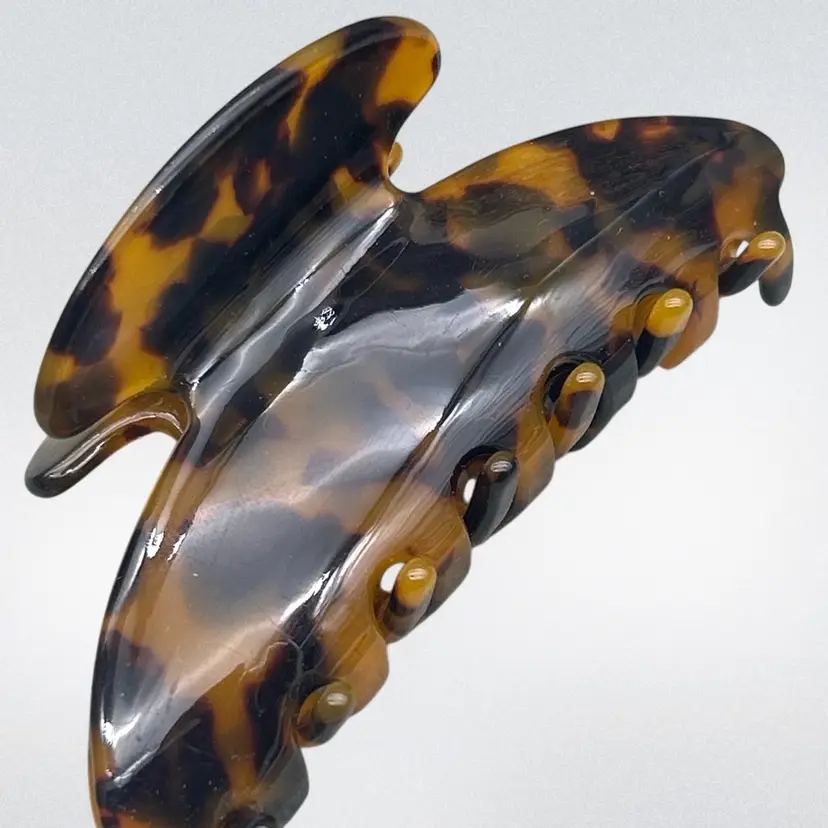 Details • Type: Hair claw clip • Material: Acrylic/acetate with metal spring • Color: Amber, brown, black tortoiseshell