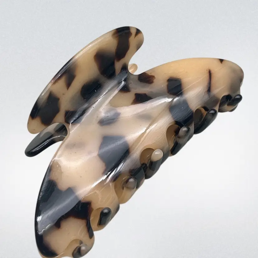 Details • Type: Hair claw clip • Material: Acrylic/acetate with metal spring • Color: Cream, beige, brown tortoiseshell
