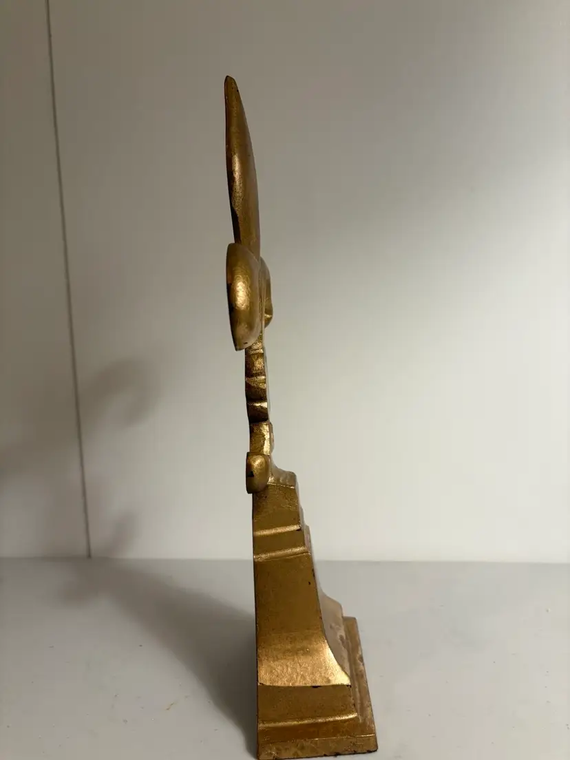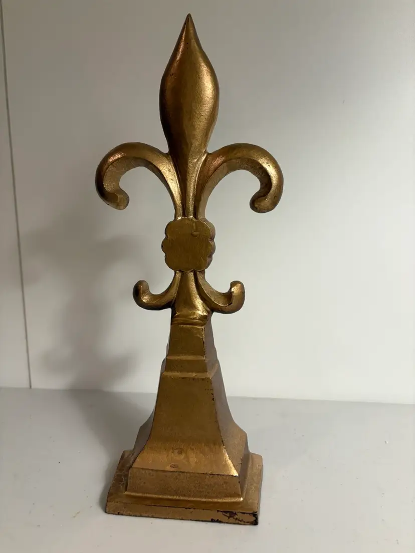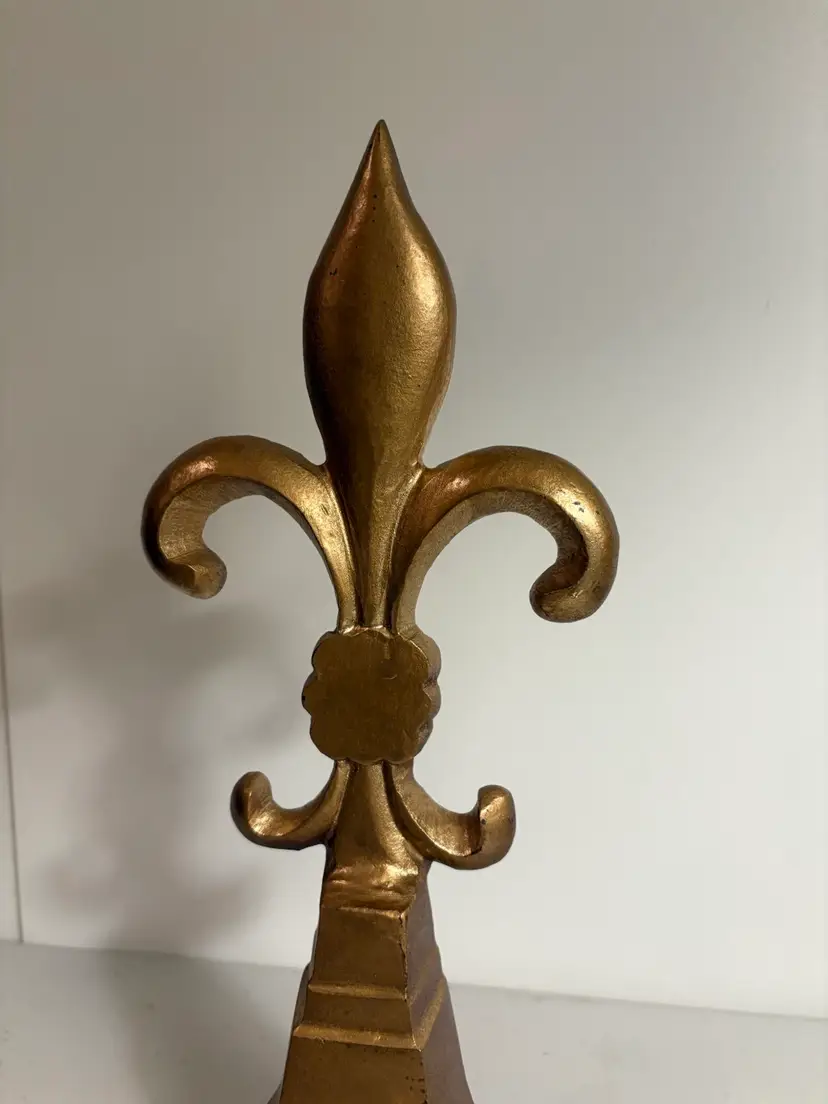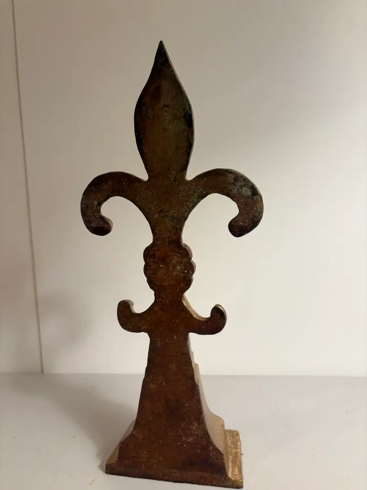 The French Country Provence Fleur de Lis Brass Doorstop or Bookend is a stylish and decorative piece perfect for any home. Made of brass and featuring a Fleur de Lis pattern, this item exudes a French Country charm with a hint of elegance. Standing at 12 inches tall, it can serve as both a functional doorstop and a beautiful bookend, adding a touch of sophistication to any room. Ideal for collectors or those looking to enhance their decor with a hint of French flair.
