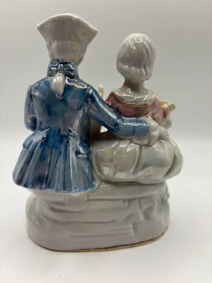 Beautiful French Provincial procelain figurine. Luster finish with gold trim.