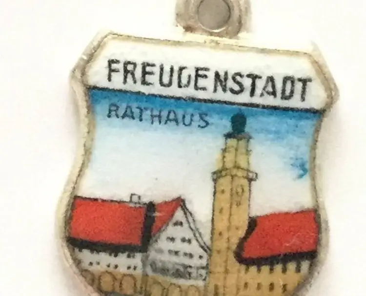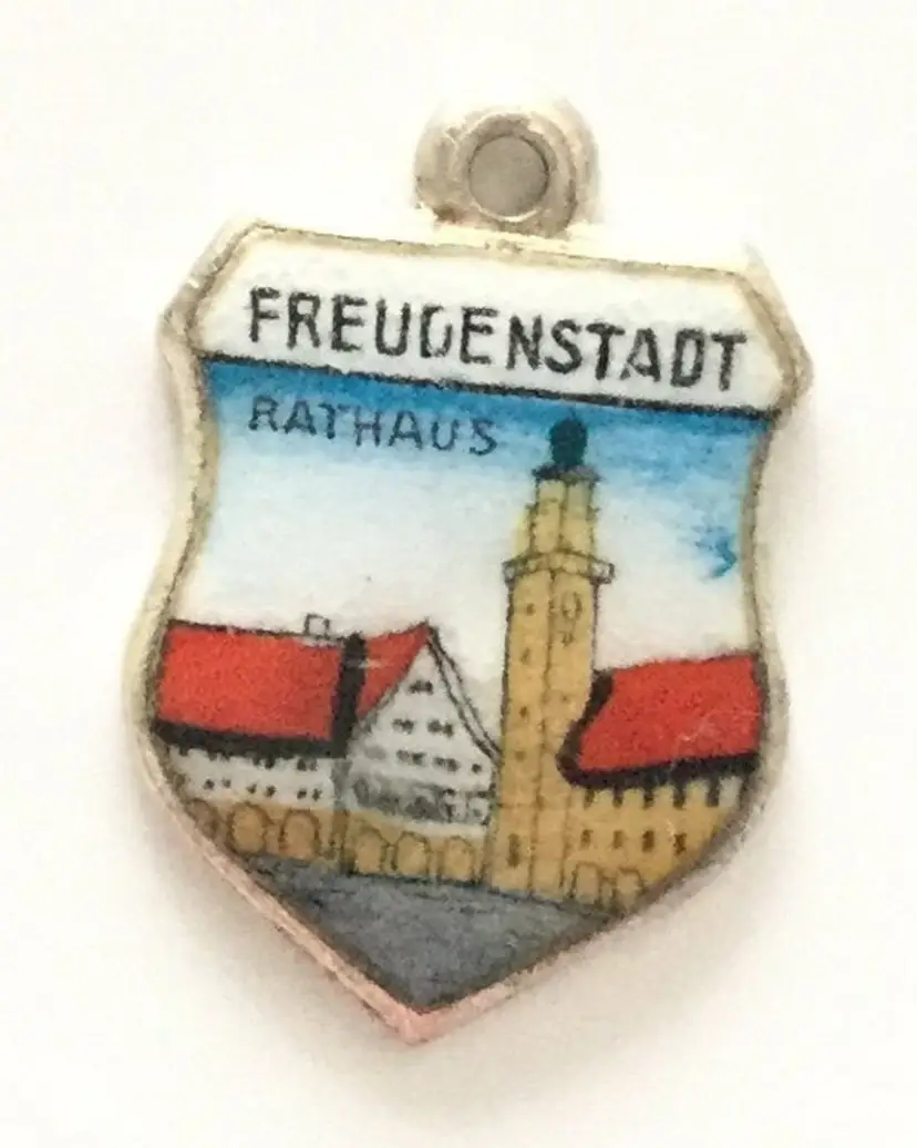 Freugenstadt - Germany - Vintage Enamel Souvenir Travel Shield Bracelet Charm - 800 Silver
