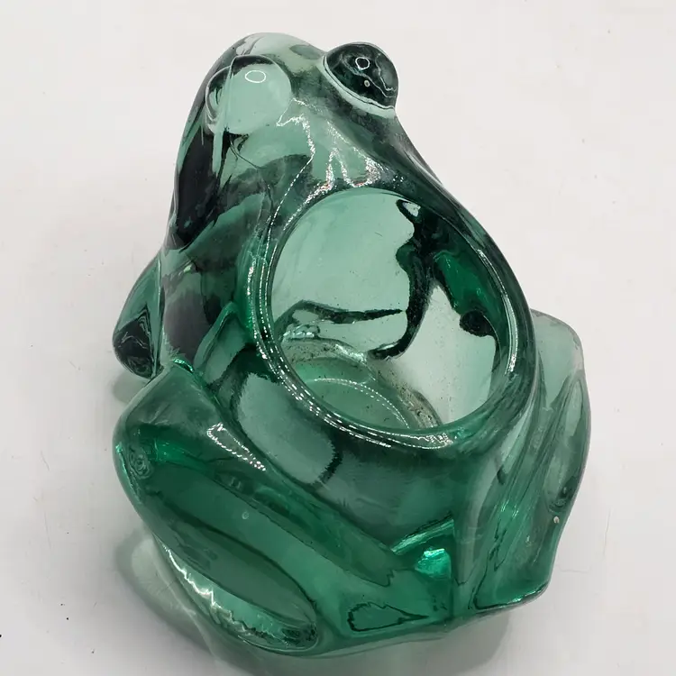 Frog glass candle Votive Holder Indiana Glass vintage green