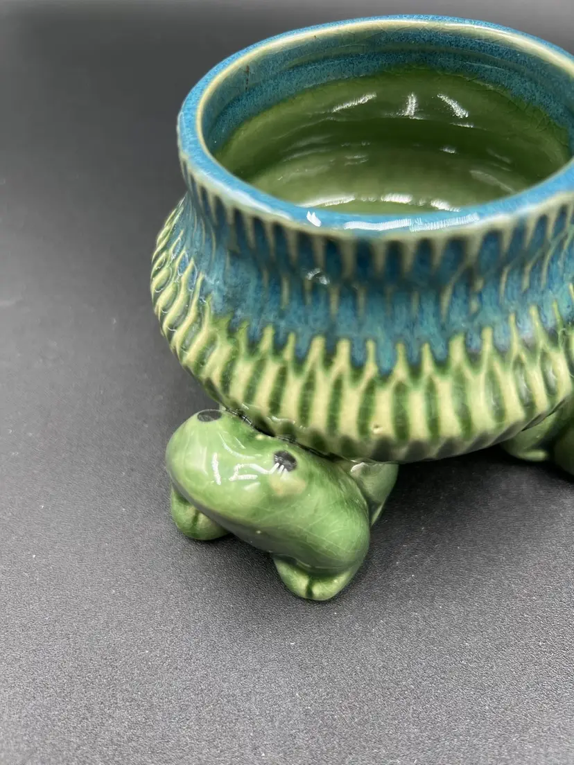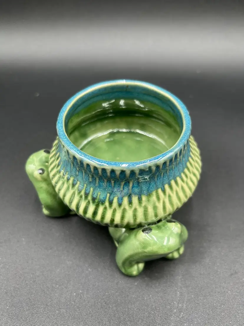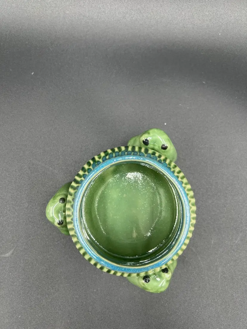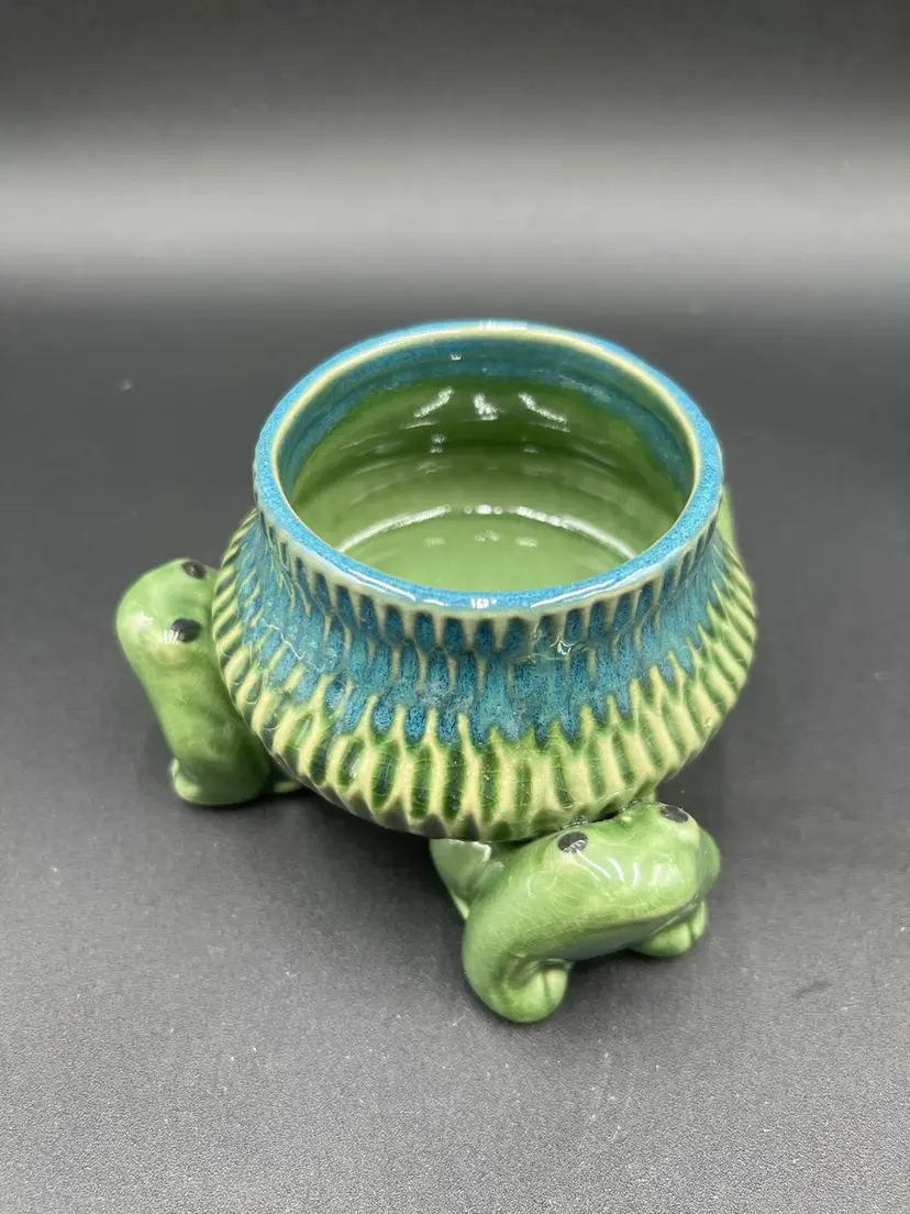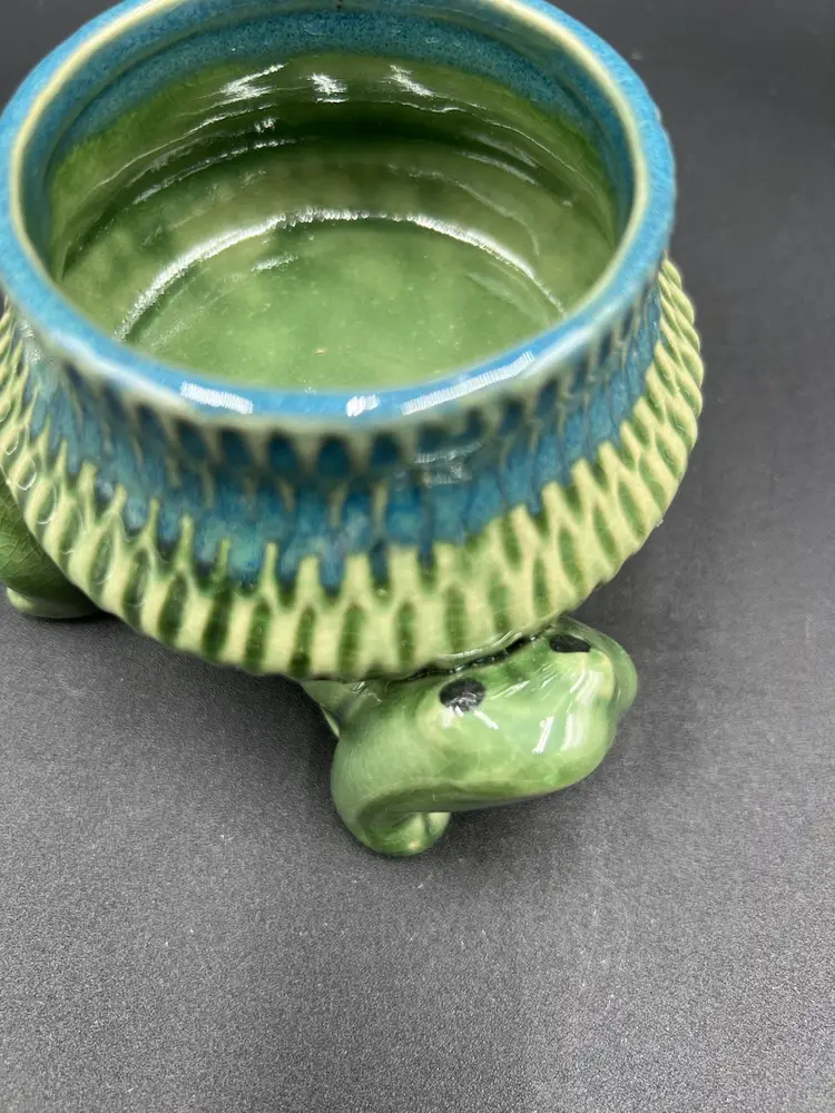 3” x 4.5” & 2” deep. There is some crazing in the glaze. No chips or cracks.