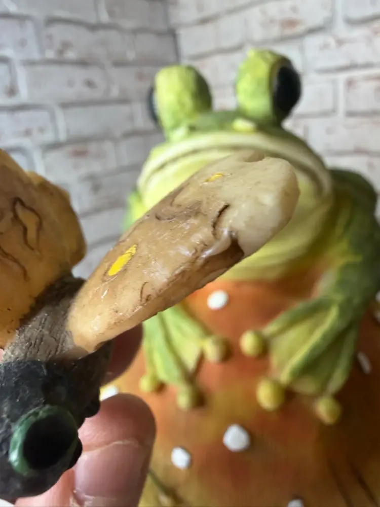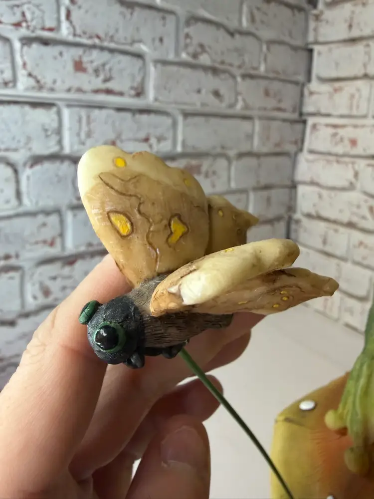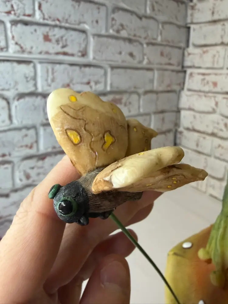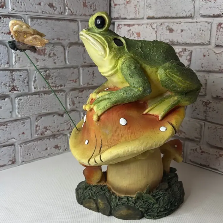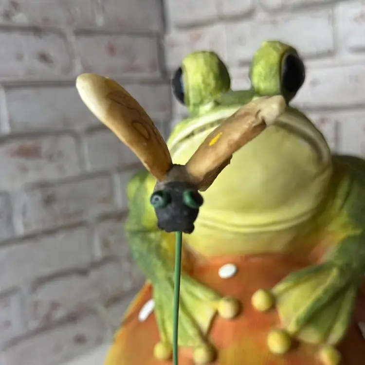 Measures almost 12” tall and buttery from the bottom is 11” and base is 8” long. This was outside I look the best compared to the rest and for someone that like frogs and butterflies it looks great and also the butterfly wings do have some minor flea-bites