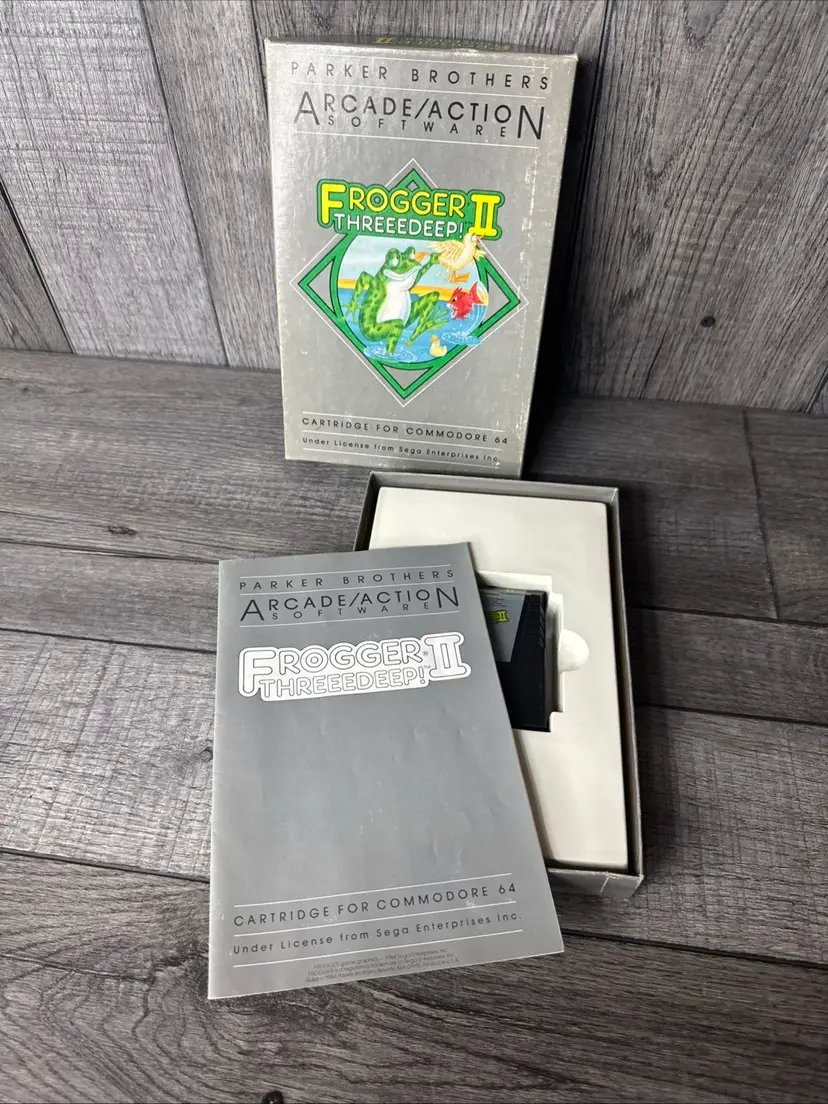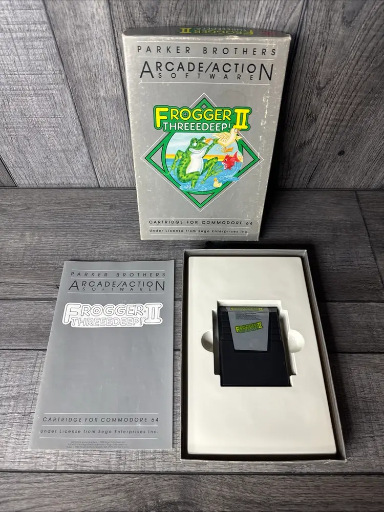 Vntage Frogger II 2 Threeedeep Commodore 64 C64 Parker Brothers #1890 CIB RARE -What you see is what you receive, please see photos. -Item is pre-owned. -Comes with original box, manual, game cartridge. -Free shipping.