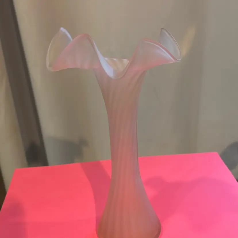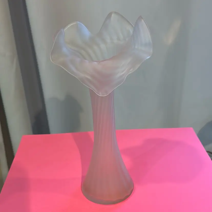Ruffled frosted glass Jack-in the -pulpit vase. No chips or cracks. Absolutely beautiful! Measures 8 inches tall.