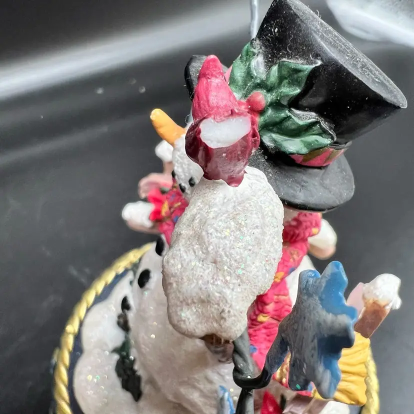 This Frosty Snowman Music Box is a perfect addition to your Christmas decor. With its multicolor design and intricate 3D details, it's sure to catch the eye of anyone who sees it. Made from a combination of resin and metal, this collectible piece plays what sounds like a piece from “Silver Bells”