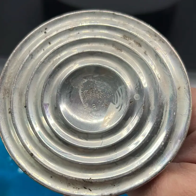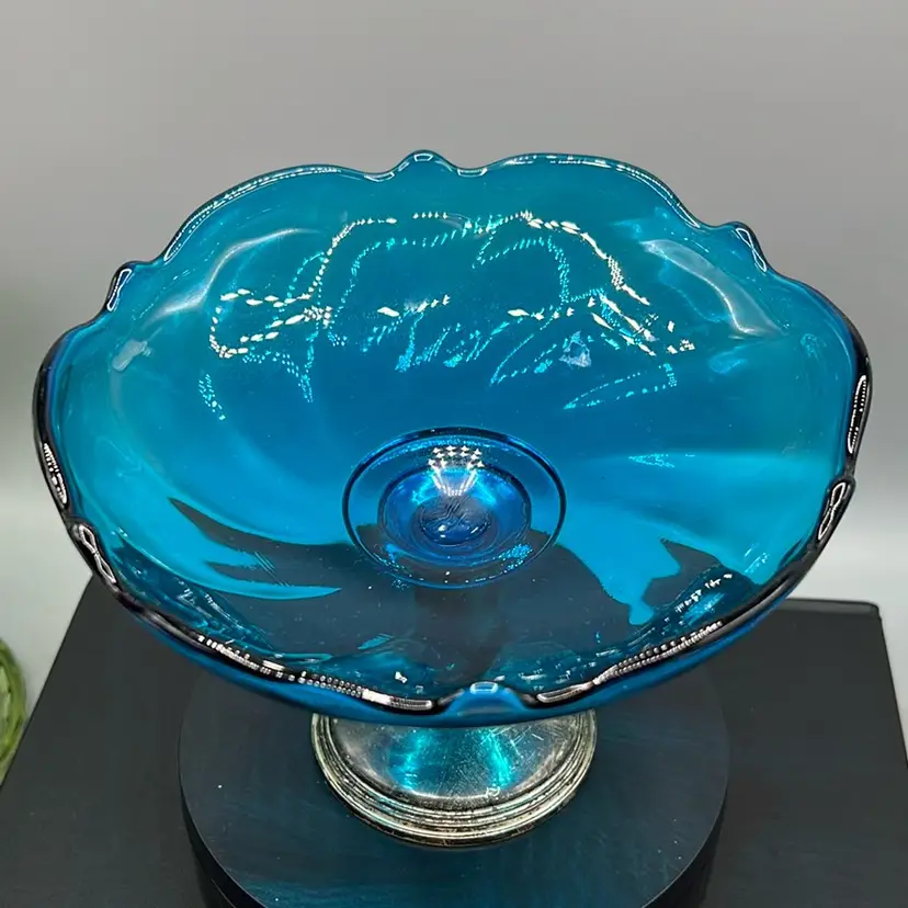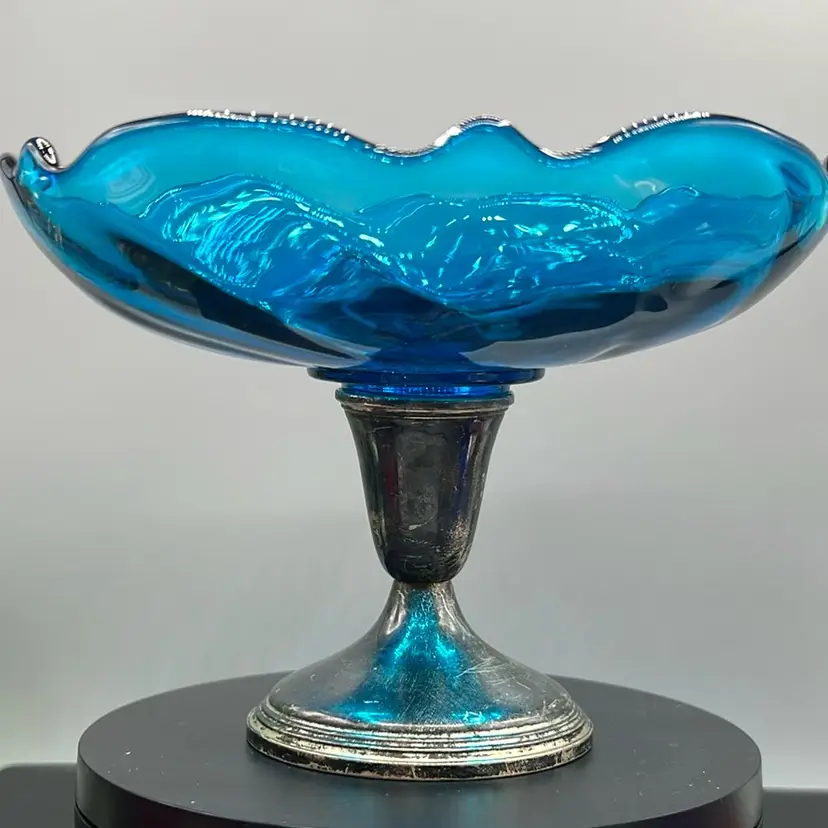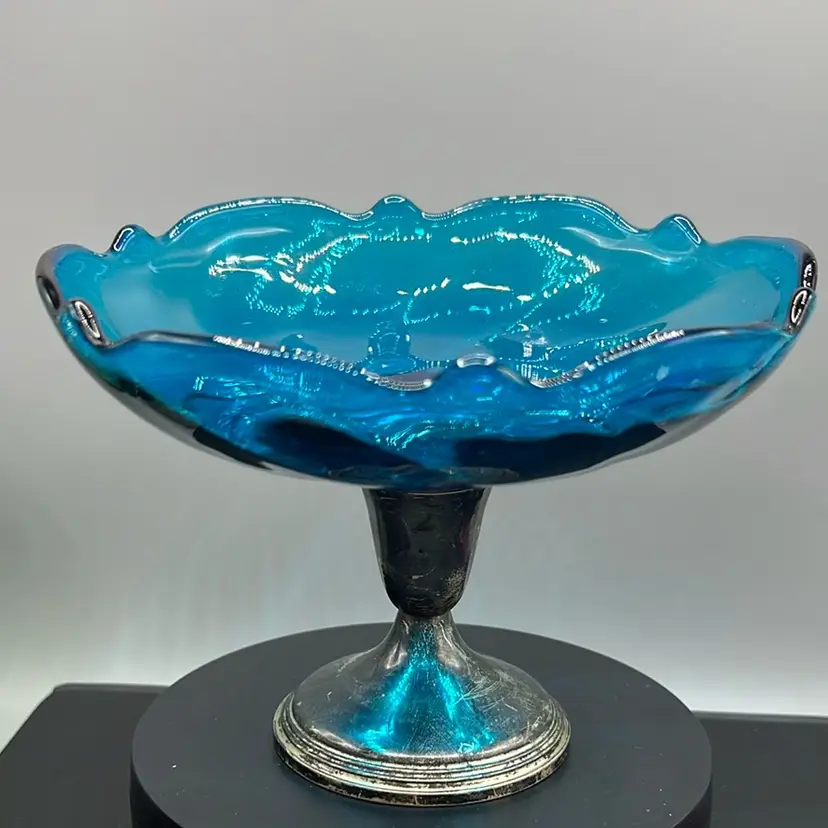 Vintage sterling silver (wieghted) and blue glass Empire 383 fruit bowl 9” Diameter