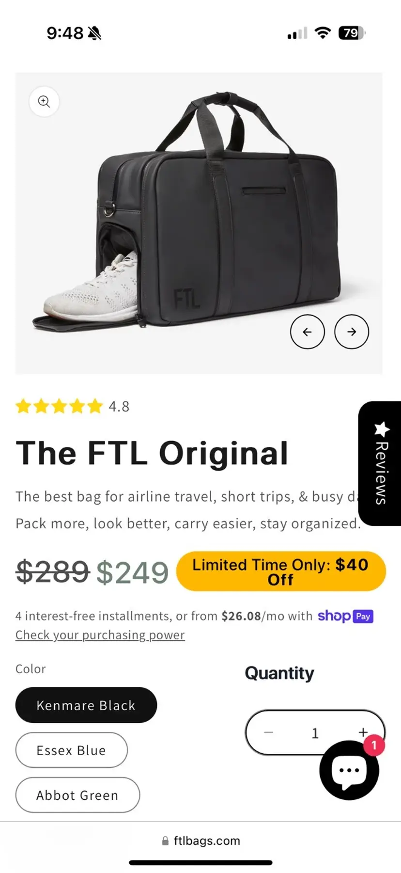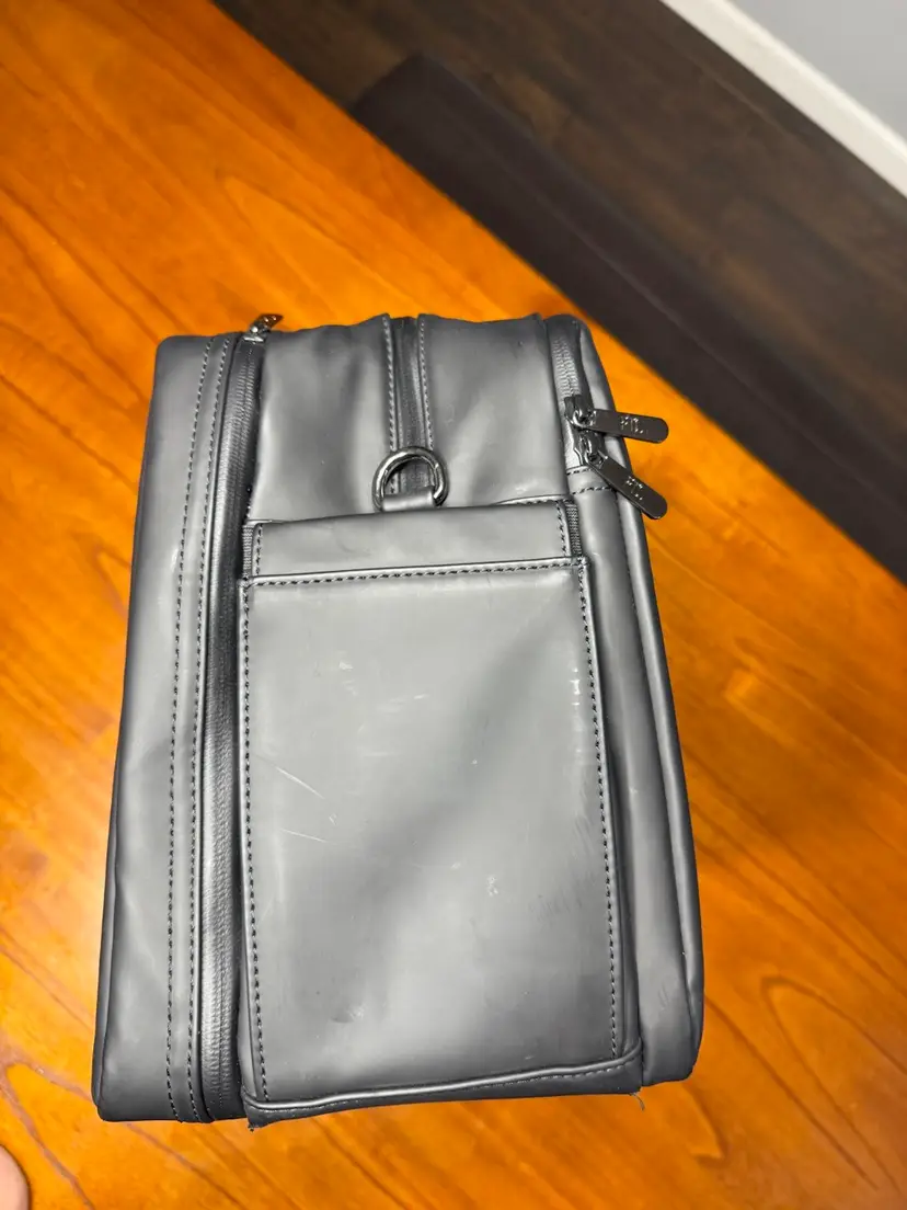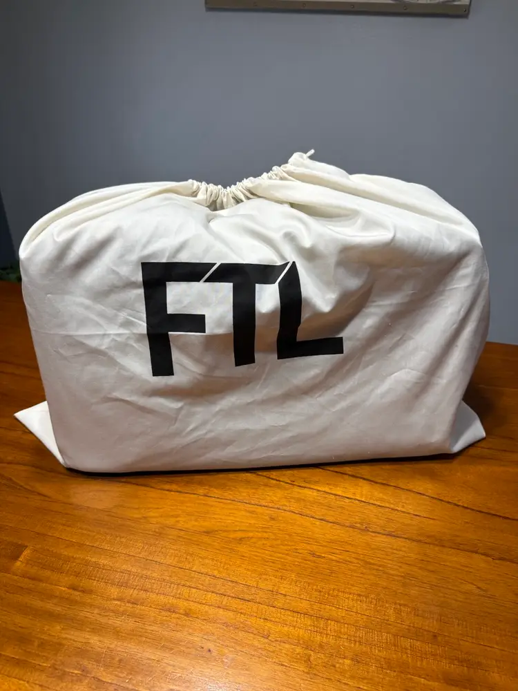 This is a 30 liter duffel bag from FTL, dimensions are H 11” x L 18” x W 8 “. Bag has got in plenty of use, see pictures. Has separate shoe compartment, laptop compartment, dust bag, shoulder strap, and garment bag as well. Looking to get bigger duffel and won’t have room for 2 duffels.