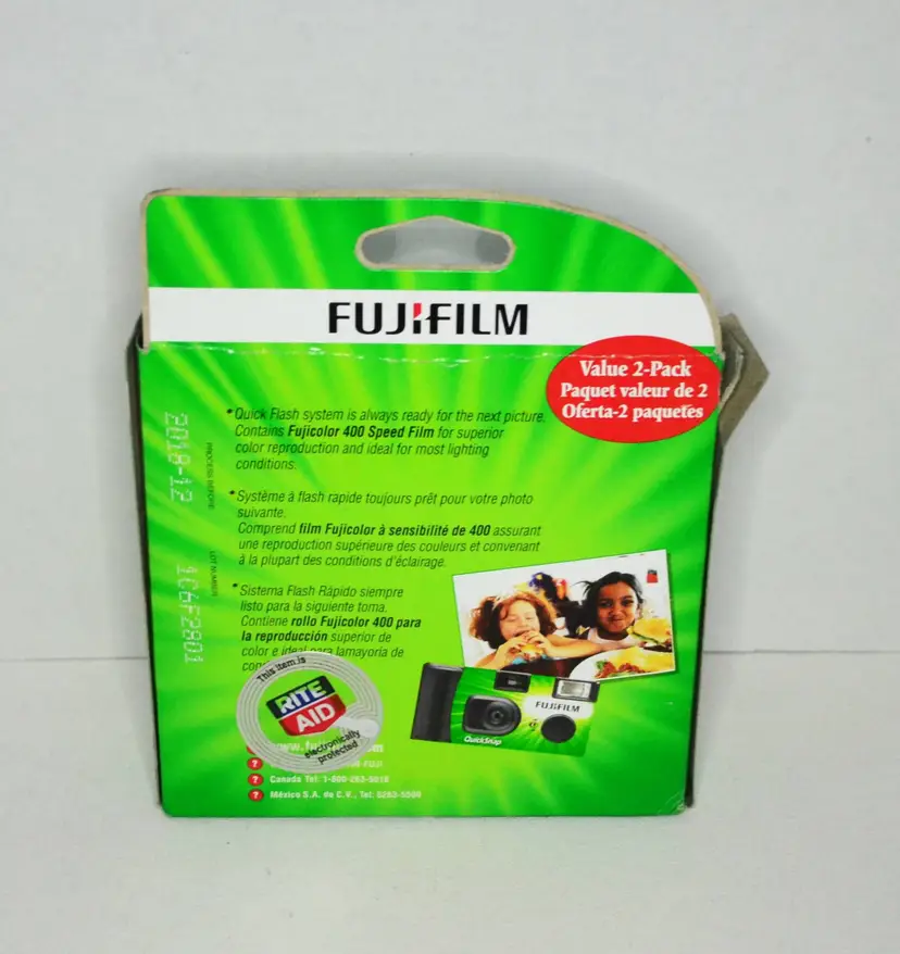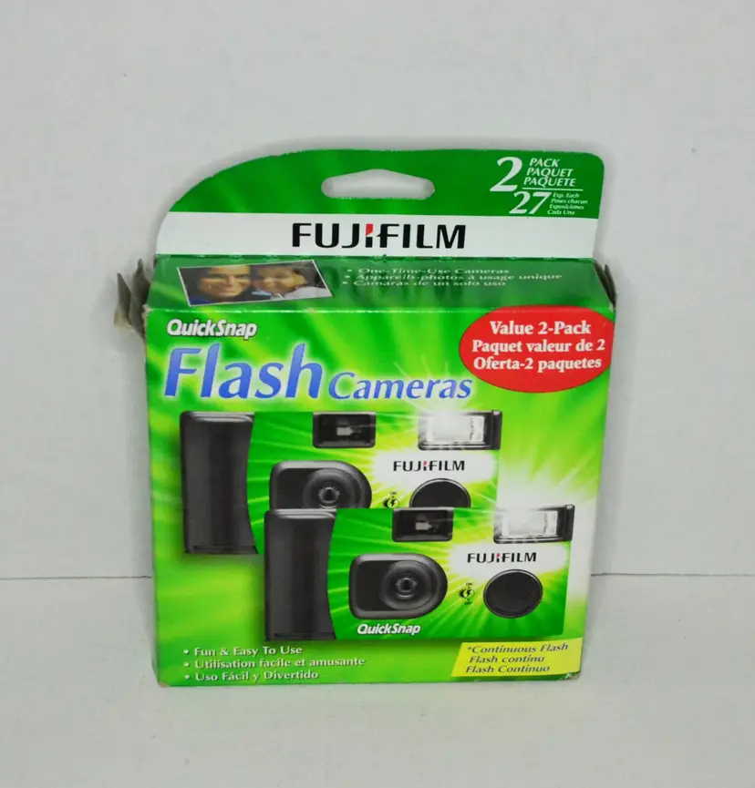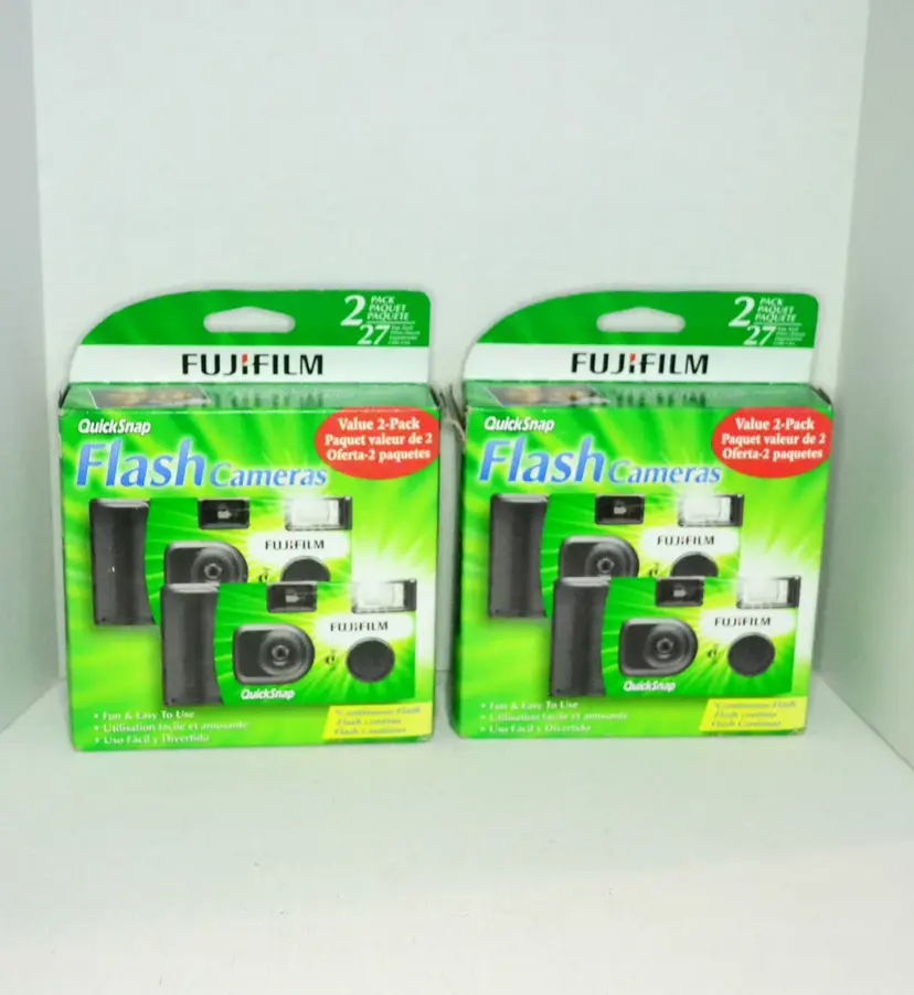 These cameras are new old stock, never opened. Each package has 2 cameras for a total of 4 Film speed ASA400, 27 exposures each camera.