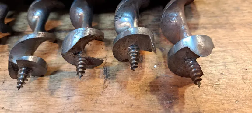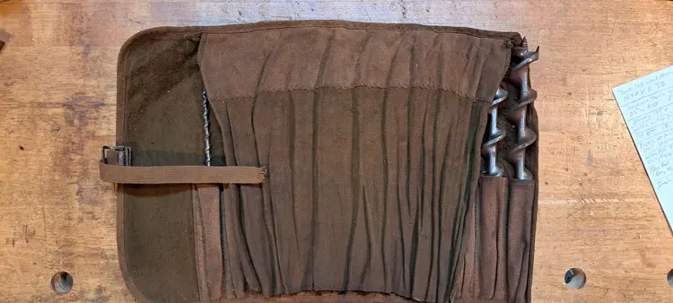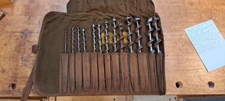 Full set of Irwin auger bits in a Irwin branded tool roll. Sizes are from 4 to 16, complete set. Now I am not sure if the bits are correct for the roll, and I am not sure all the bits are the same series, but they are all Irwin. The roll has seen better days and I do not think would last a round with the washing machine. I almost kept this set, but I have 4 or 5 other sets of bits....