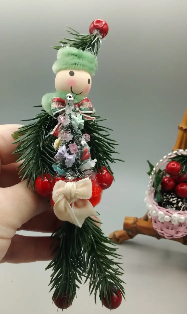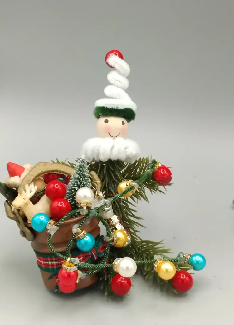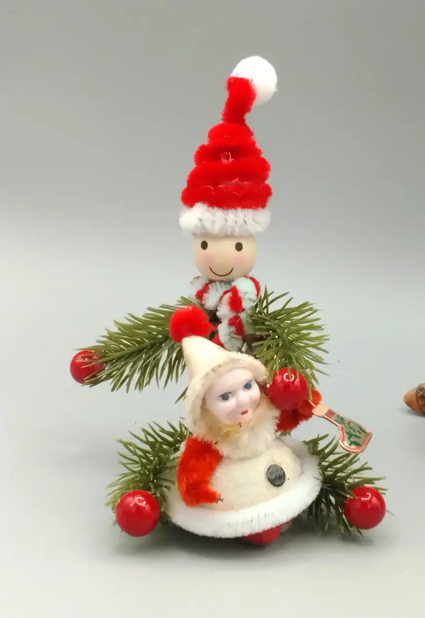 PARKISONS FUNDRAISER, This is the second group of plastic Elves that have been crafted by my 11 Year old granddaughter using plastic pine needle branches with vintage christmas toys, decorations, and jewelry. Her wish is to sell these figurines to raise money for Parkisons Research, to make her Papa feel better.