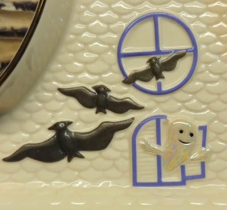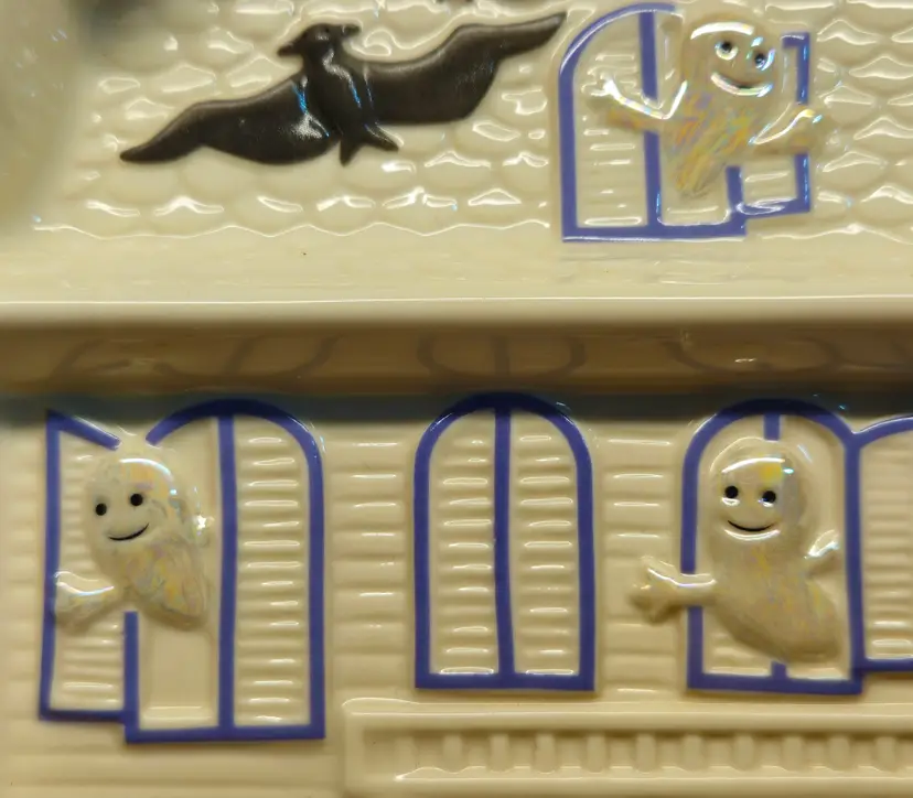 This spooky candy dish is in excellent, like-new condition, with no appreciable chips, scratches or cracks. Measurements are depicted in the pictures of the item or listed in the description of the item. Please review the photos, as they are part of the item description. Photos will always reveal noticeable defects, as will my description. Any white “blemishes” that are not pointed out in this section are from the lighting that I use for my photos. If you need clarification, please reach out to me.