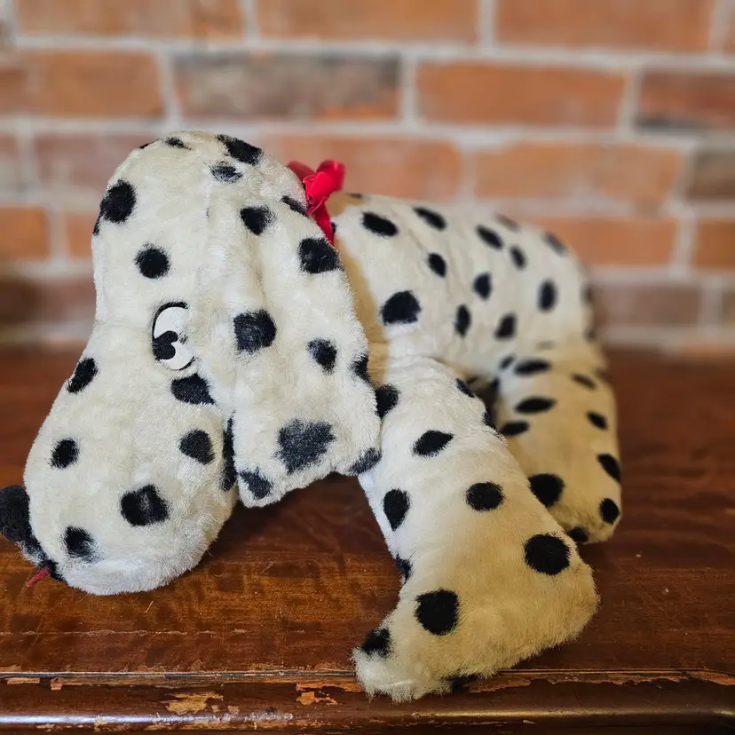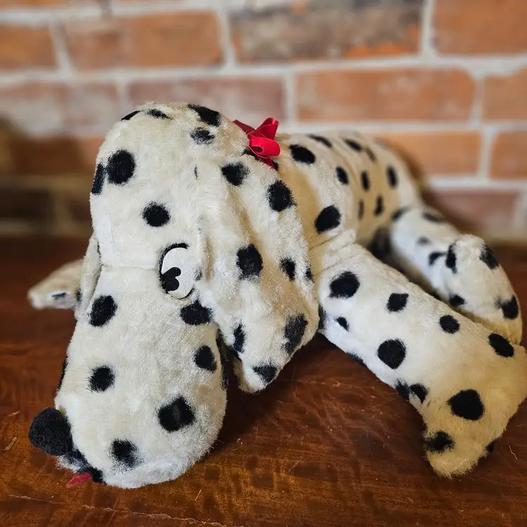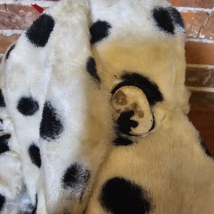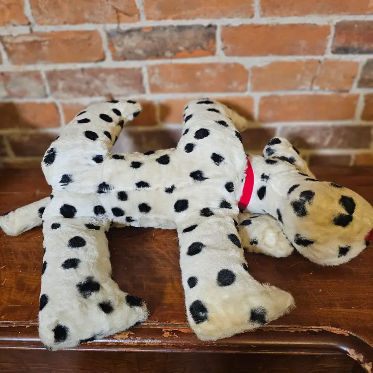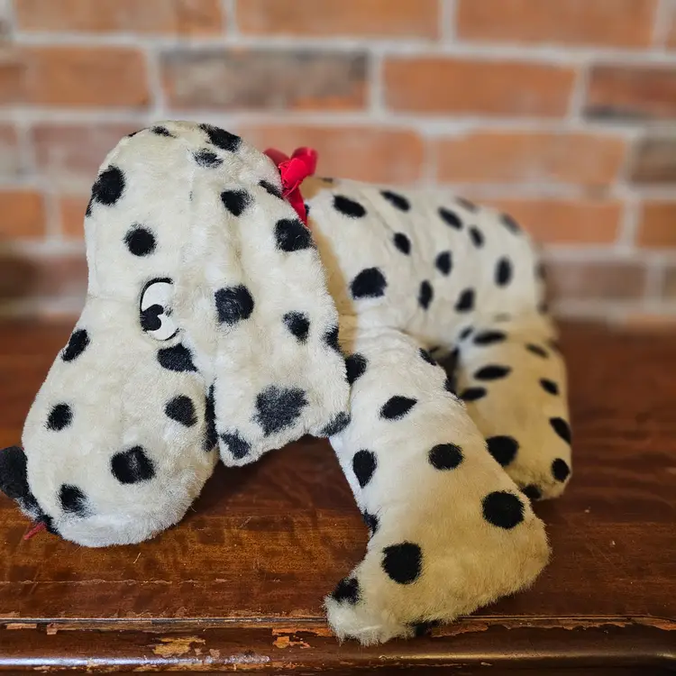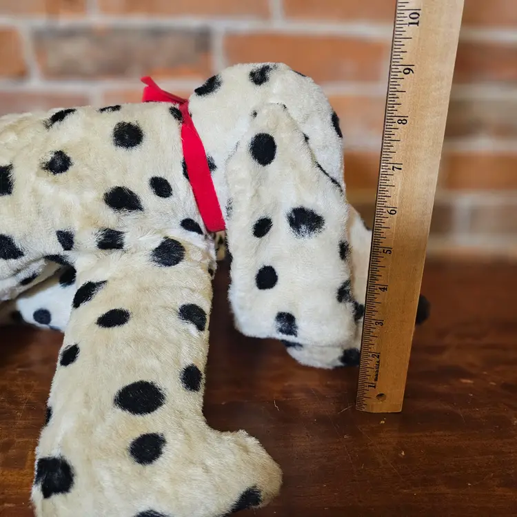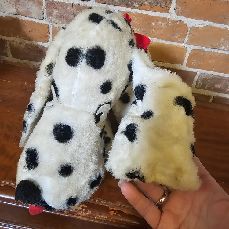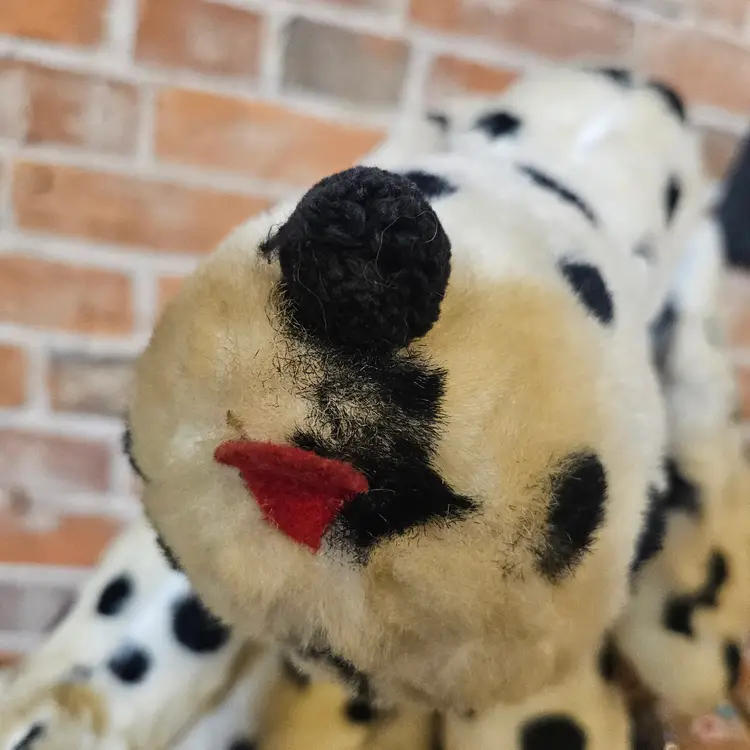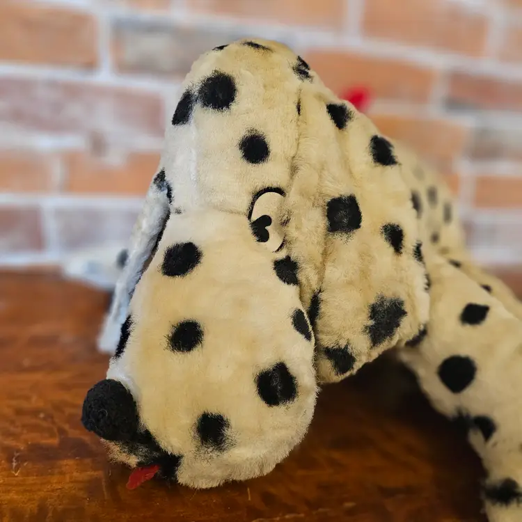 One eye has some stains on the eye. See photos. Clean with no repairs. Comes from a smoke-free home. One ear squeaks and sounds just like a "yapping" dog.