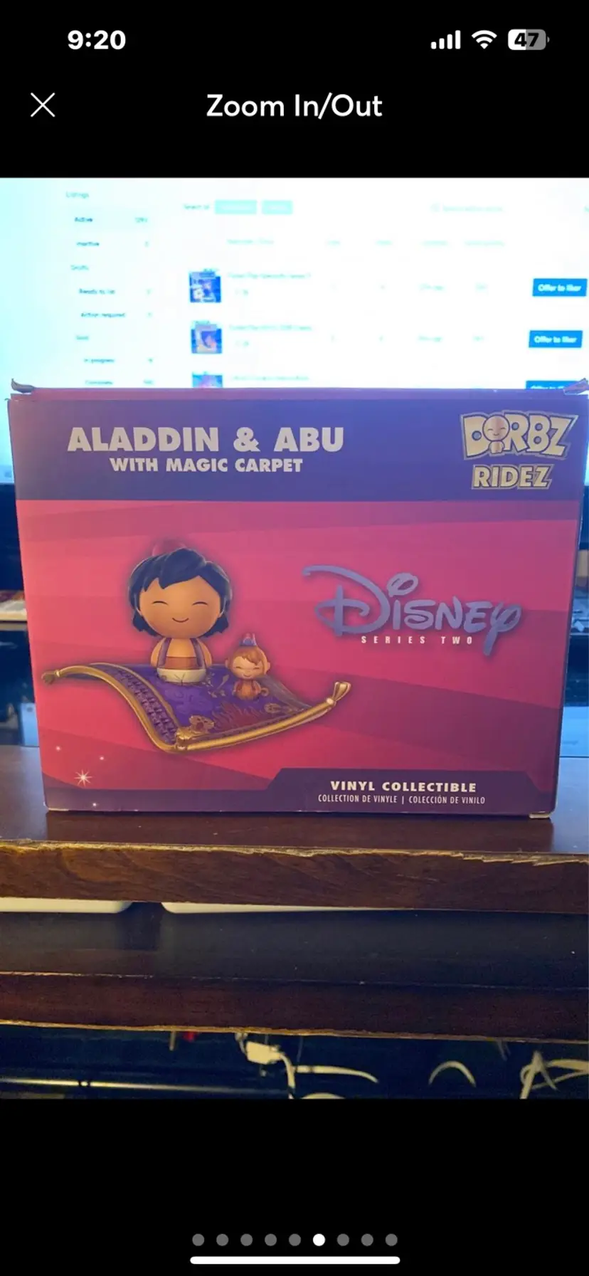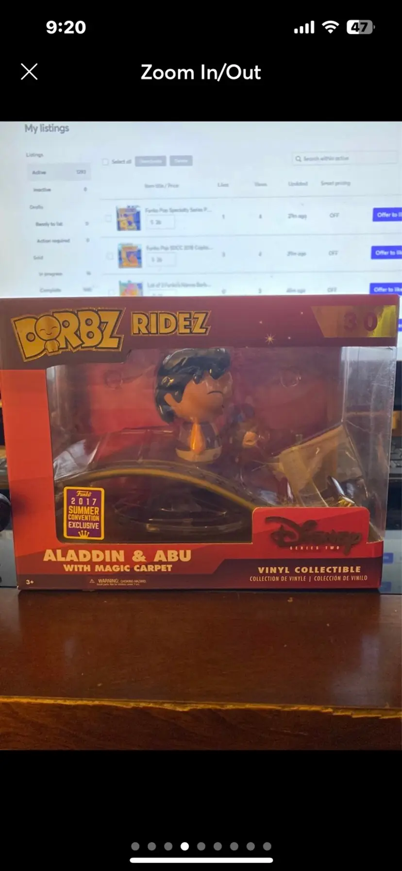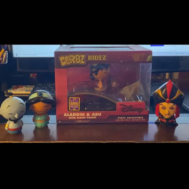 Disney’s Aladdin with Abu and Magic Carpet box set as well as loose Dorbz of Genie, Jafar and Jasmine. Box has some shelf wear. SDCC 2017