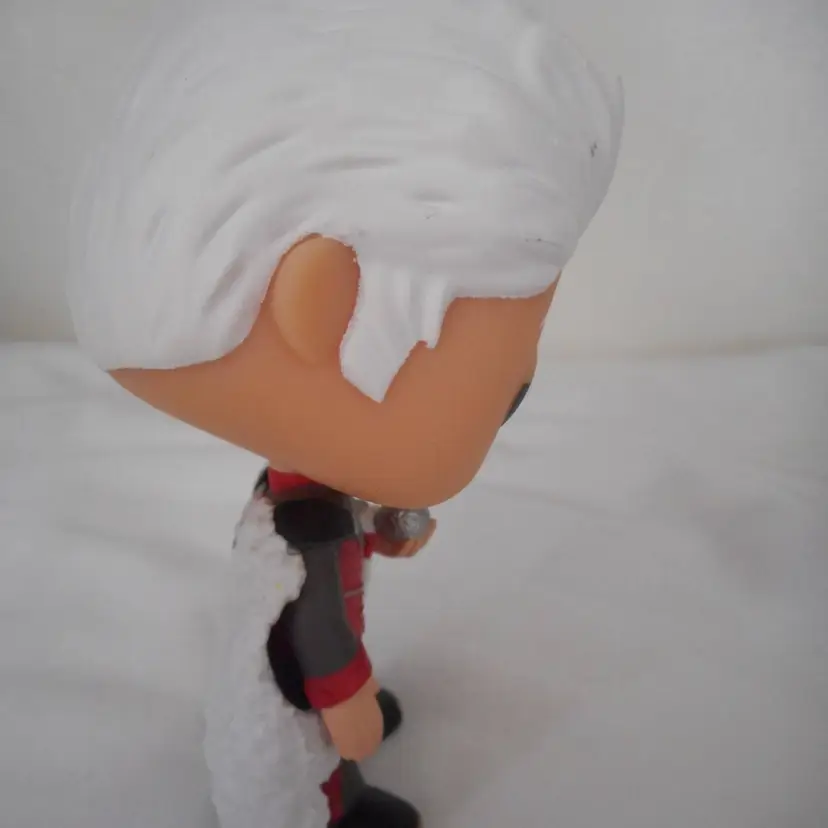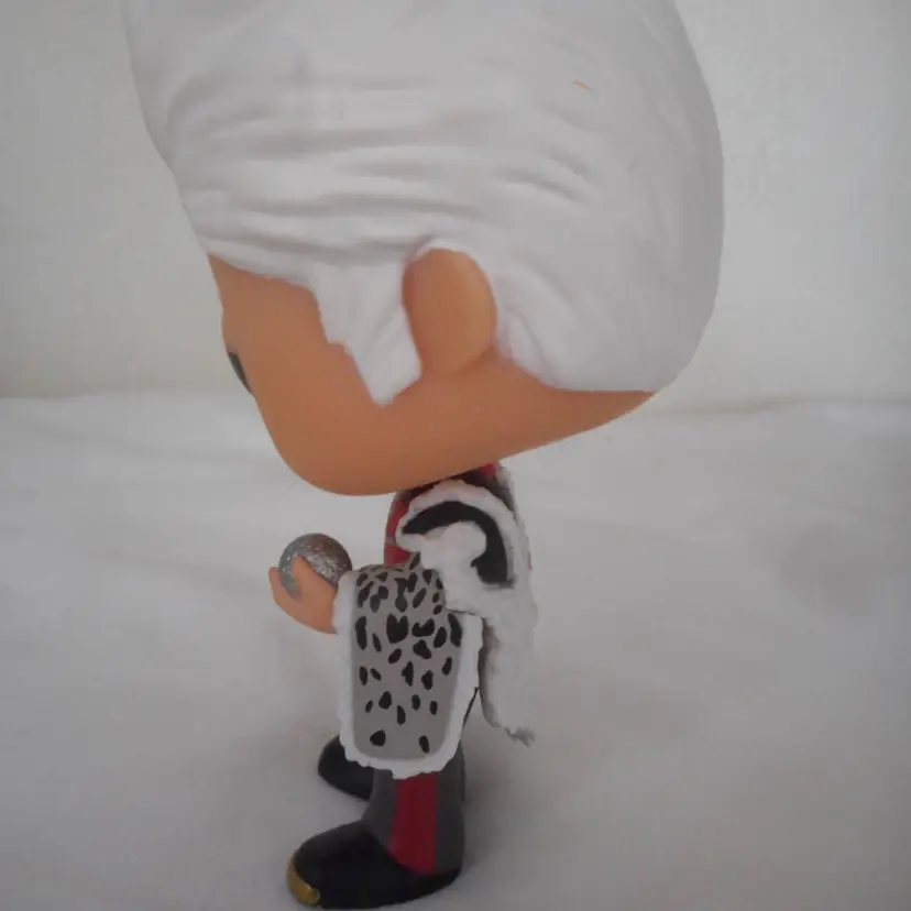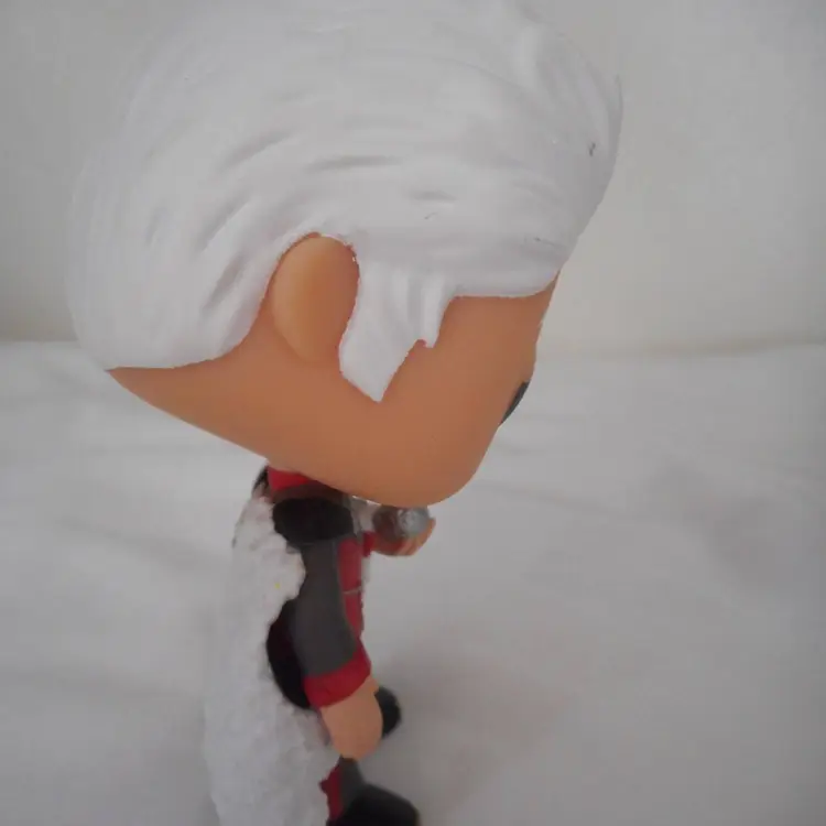 Pre-owned - the glue has come apart so the head just sits on the spring. A bit of rubber cement will fix him right up. He also has a small dark mark on his hair.