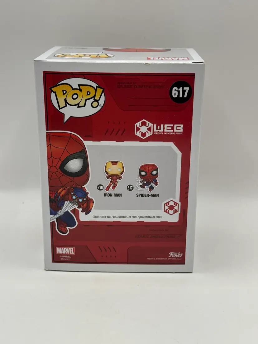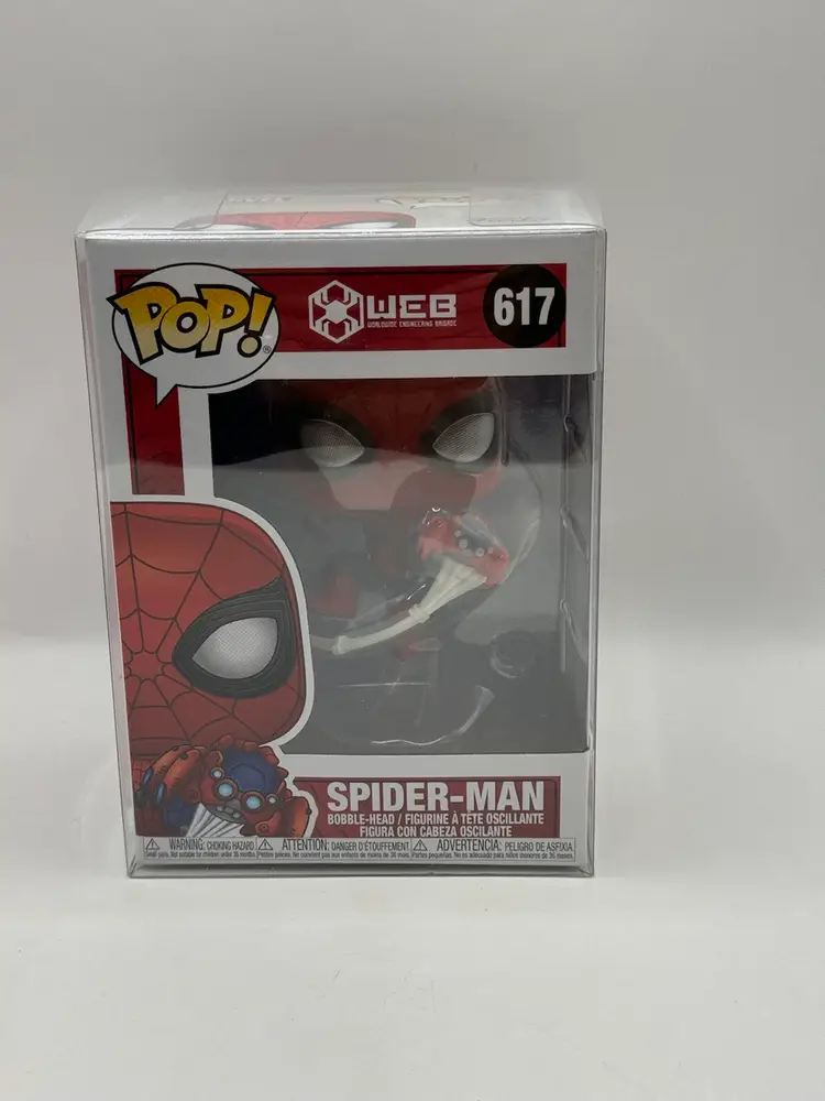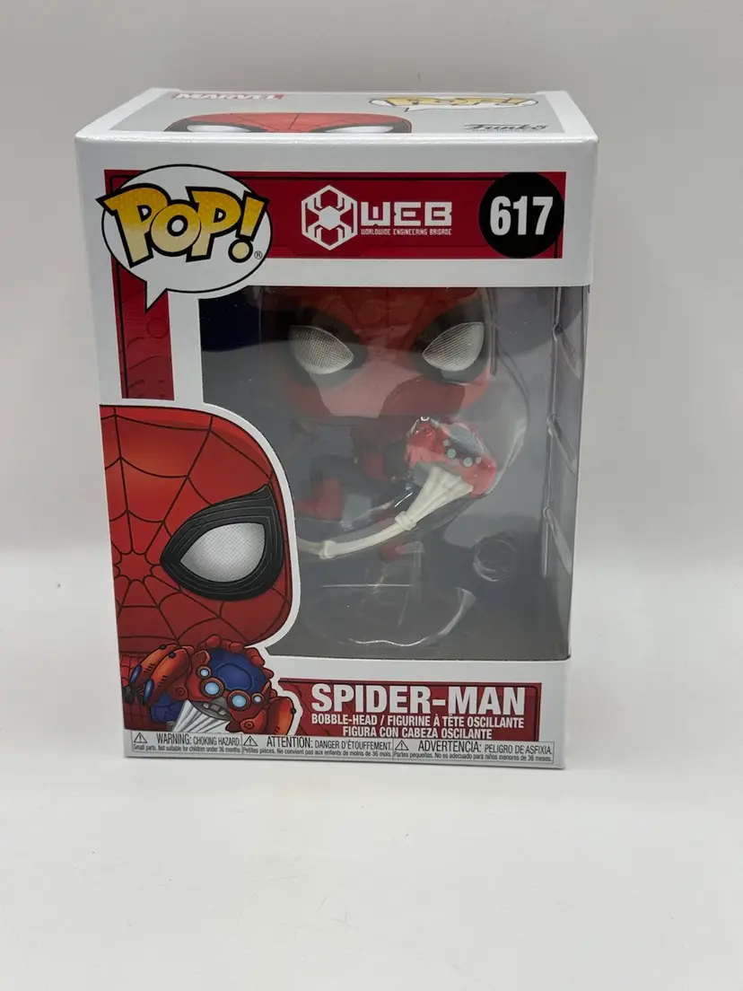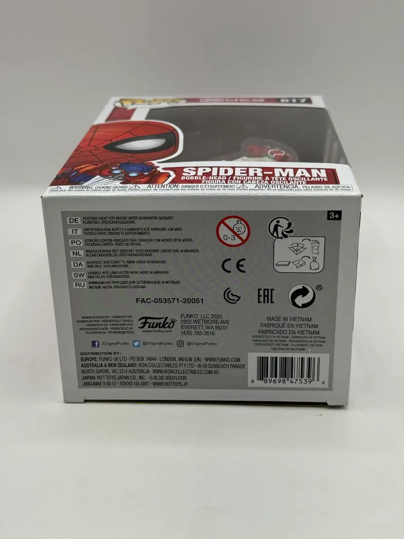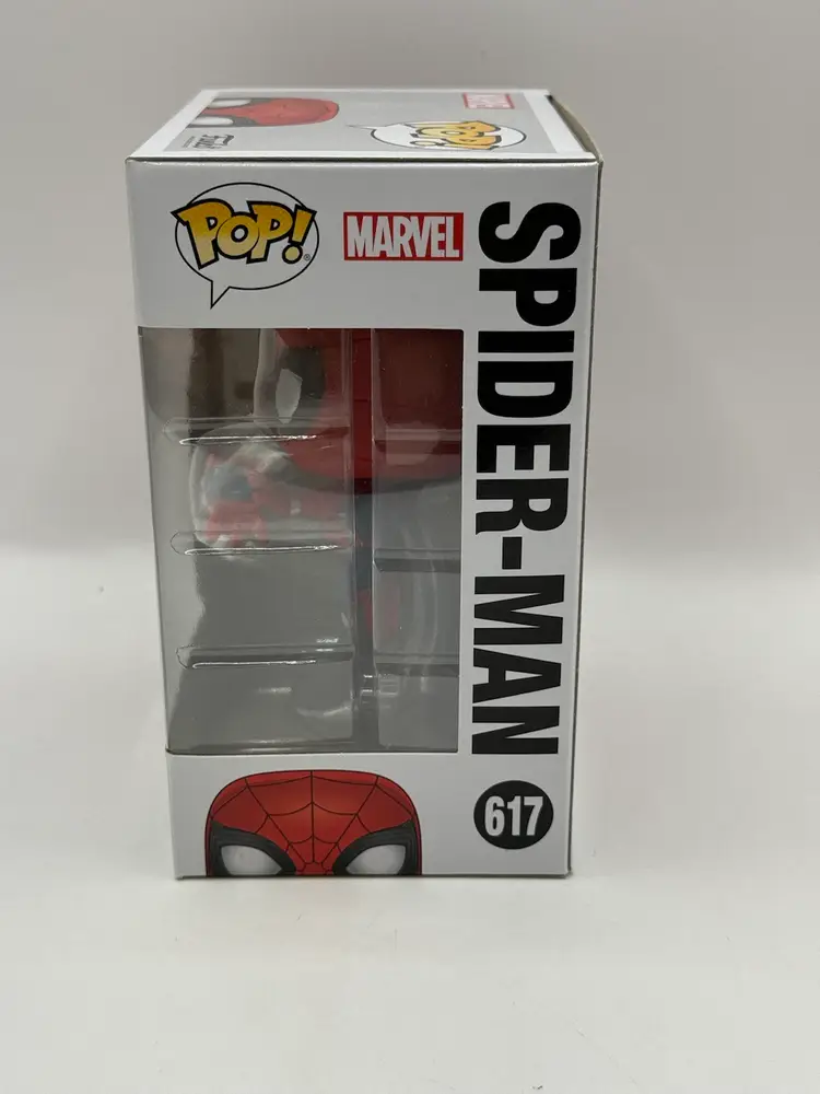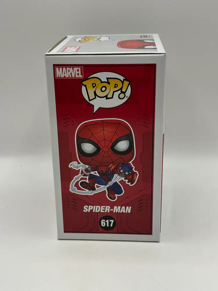 Introducing the Funko Pop! Marvel: Spider-Man #617 - Disney (Exclusive) - + Protector - NIB. This highly sought-after collectible figure is a must-have for any Marvel or Disney fan. Featuring the iconic superhero Spider-Man, this vinyl figure stands at approximately 3.75 inches tall and comes in its original packaging, unopened with a protector.