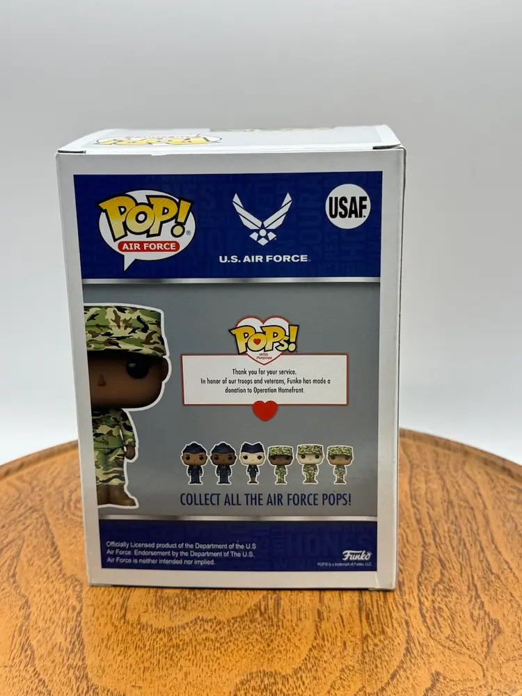 Introducing a Funko Pop figure of a female AirMan in cammies, from the US Military Air Force series. This vinyl figure is a must-have for collectors of military-themed items. The figure is part of the Pop!S with Purpose collection and features a vaulted design.