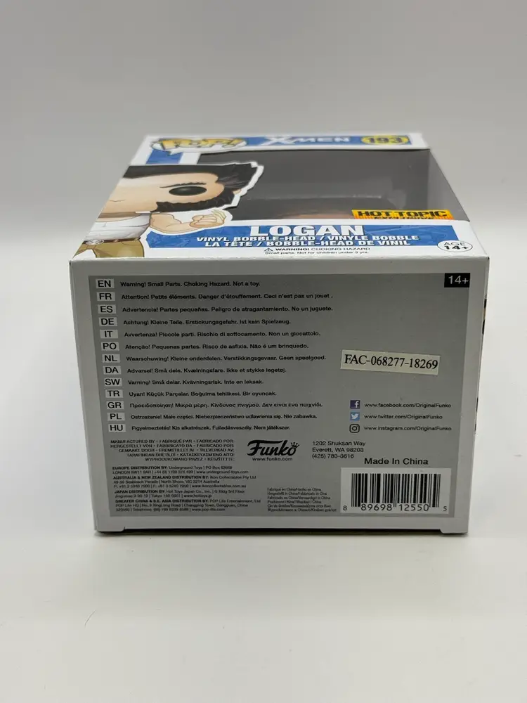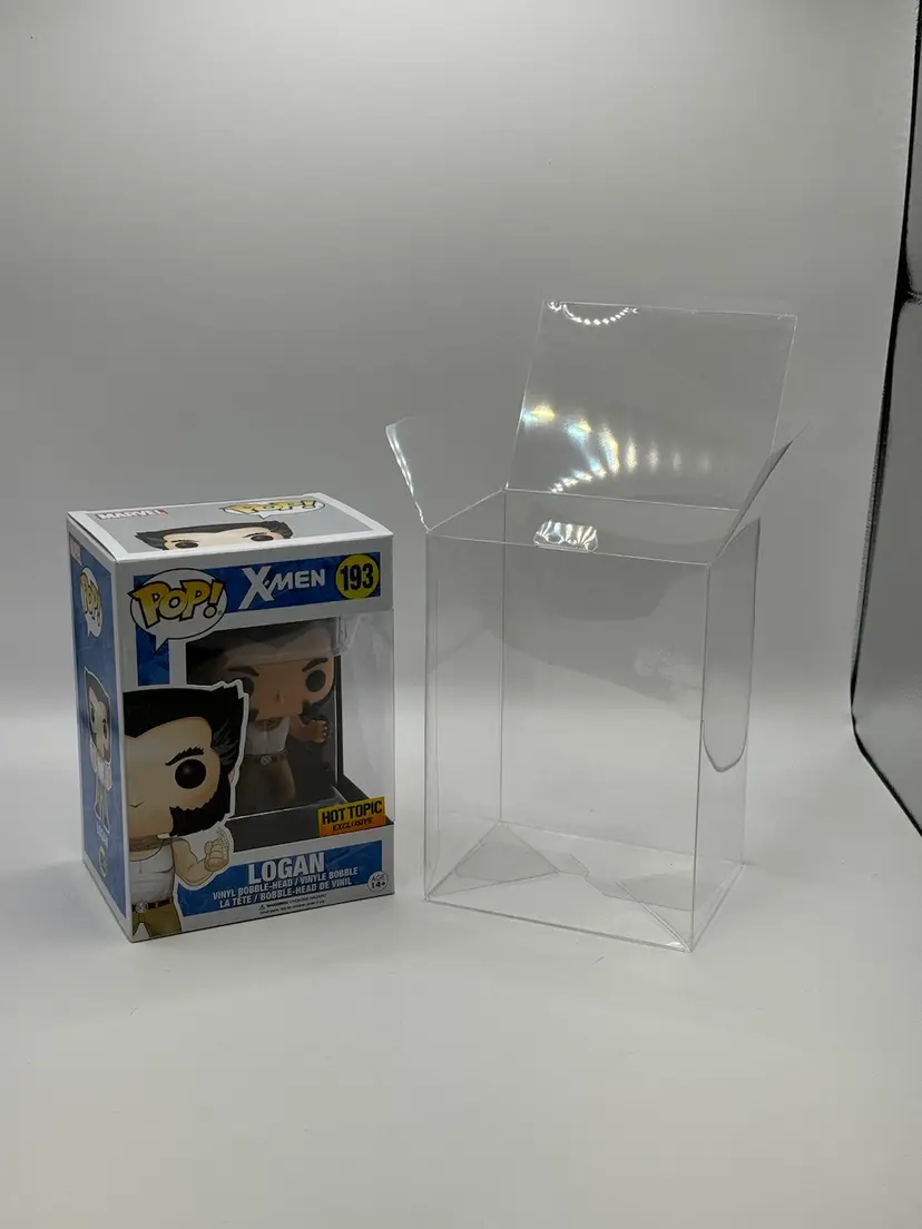 This Funko Pop! vinyl figure features Logan from the X-Men franchise in his iconic hot topic exclusive design. The figure stands at approximately 3.75 inches tall and is made of high-quality vinyl material. It comes in its original packaging, which has been opened, and includes a protector to keep it safe from any damage.