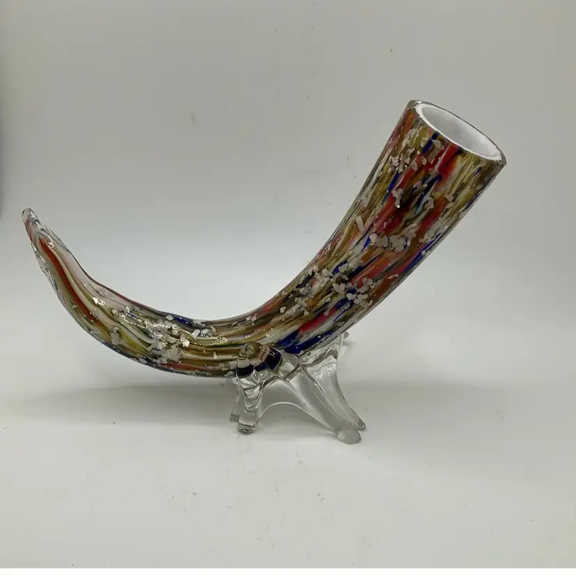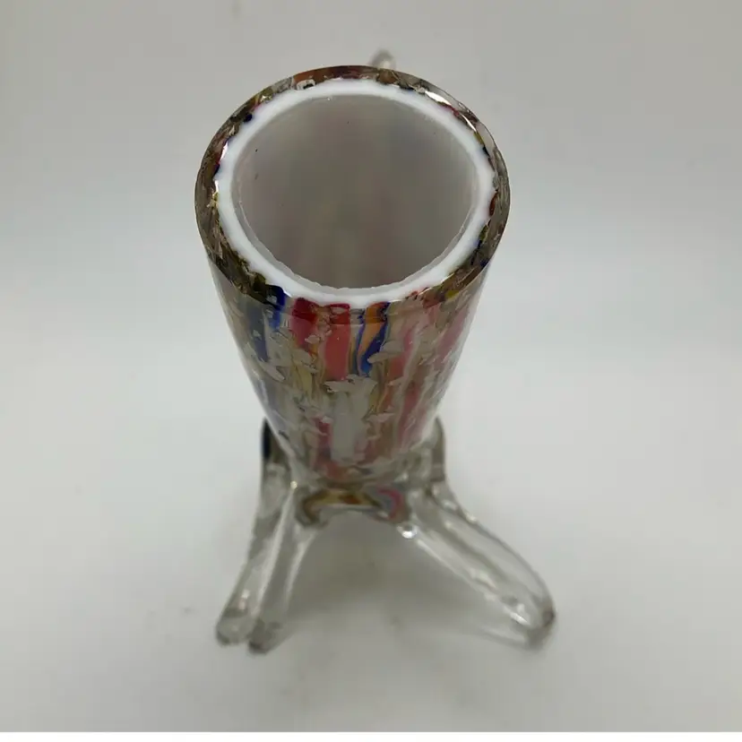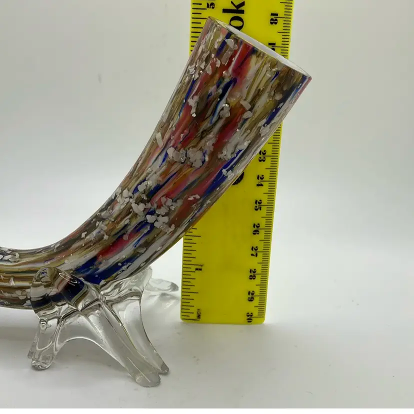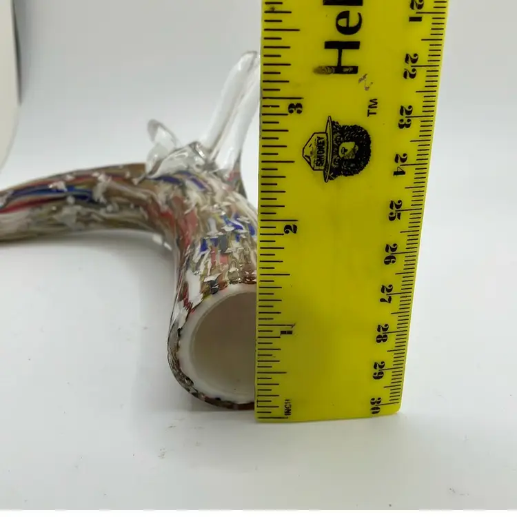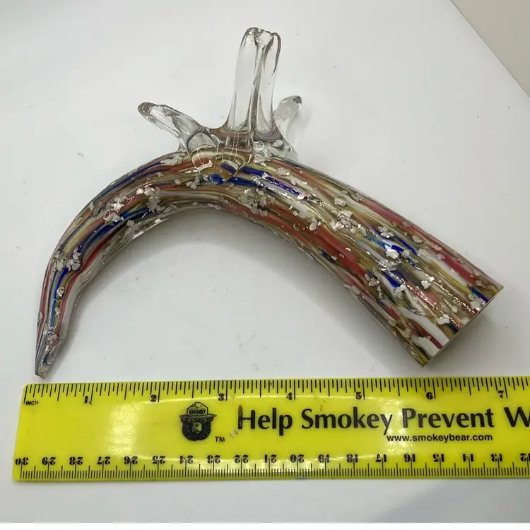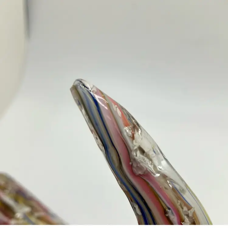 The very tip is a tiny bit rough but might be the way it was made…swirls of pink blue white with silver flake. Good condition.