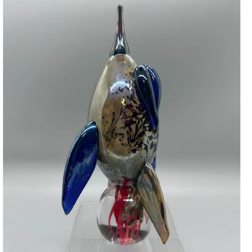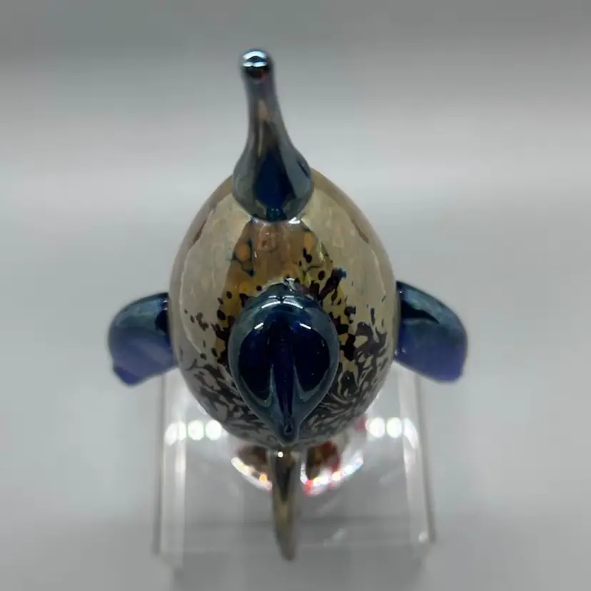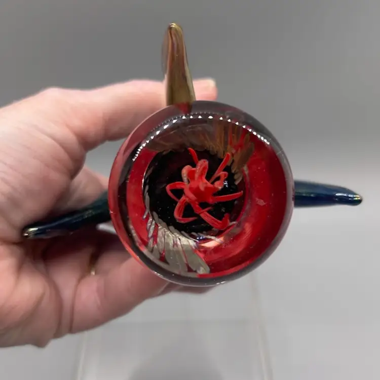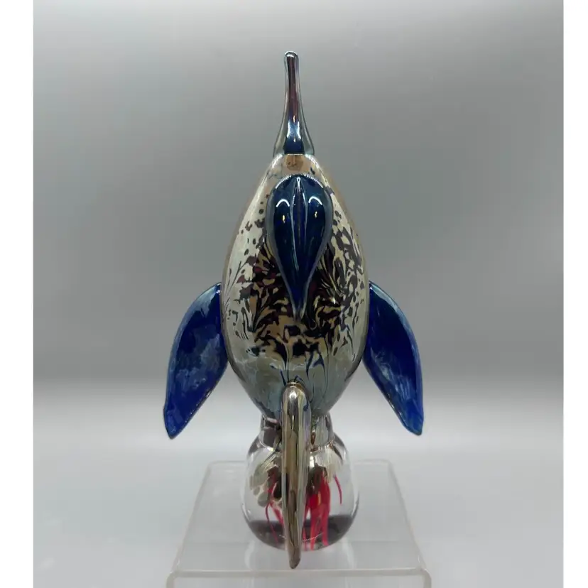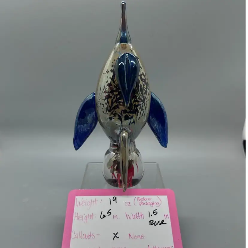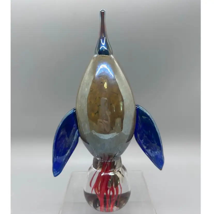 Maker unknown - really flipping cool rocket when standing on its end but fish if you lay it on its side. No chips or cracks. 6.5” tall