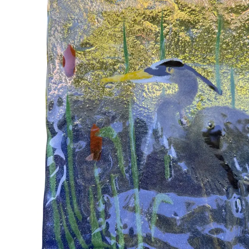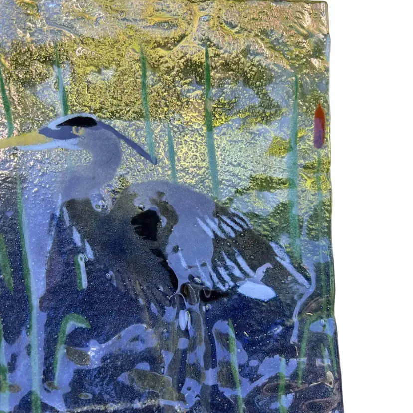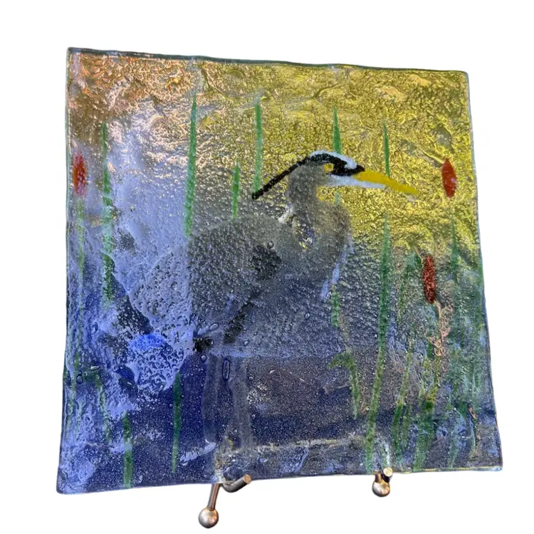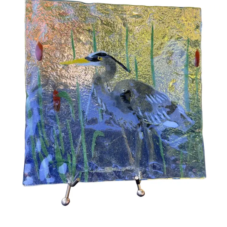 8” square Heron with cattails Unsigned No chips or cracks 12/2/2025