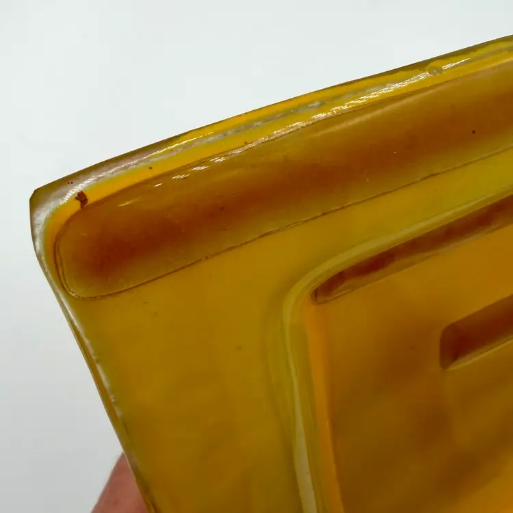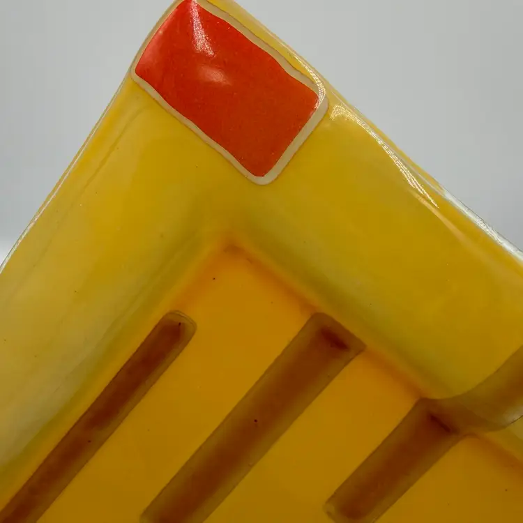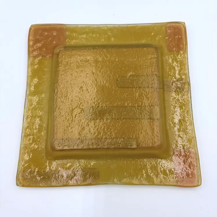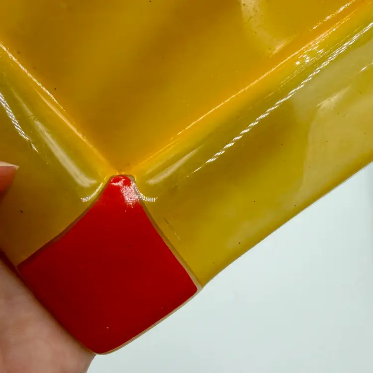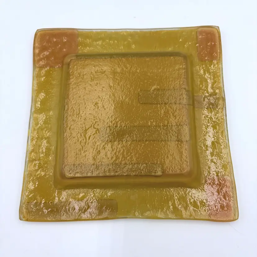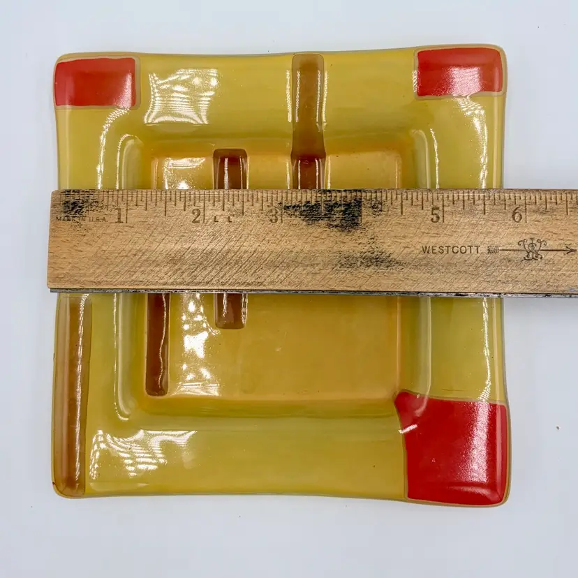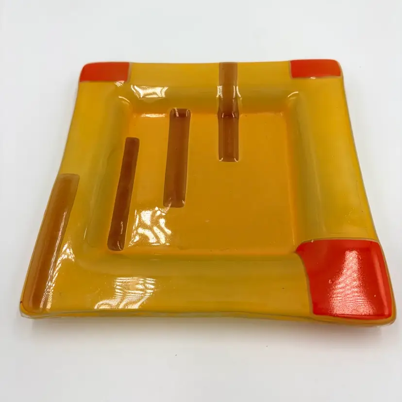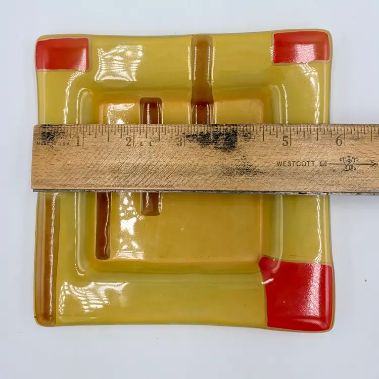 Bright & colorful Fused Art Glass Trinket Dish Yellow, Red Geometric design 5-3/4” Square