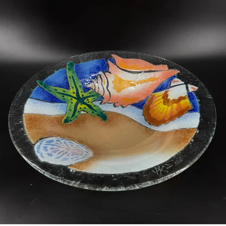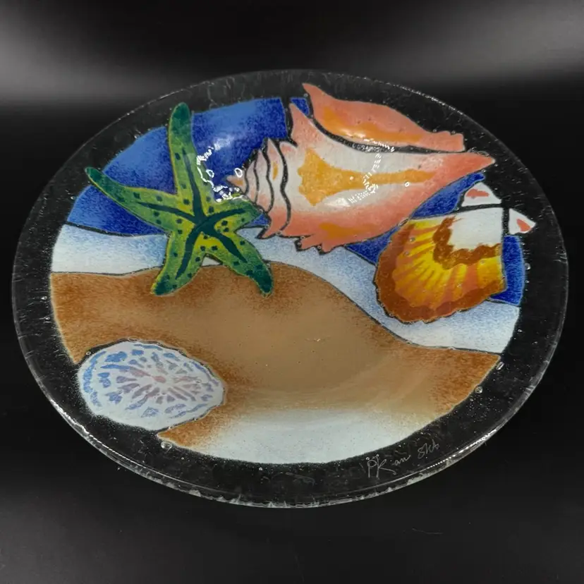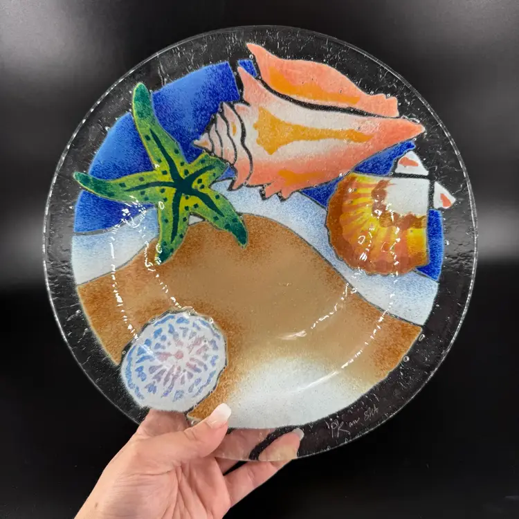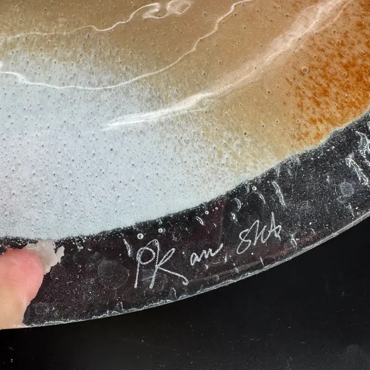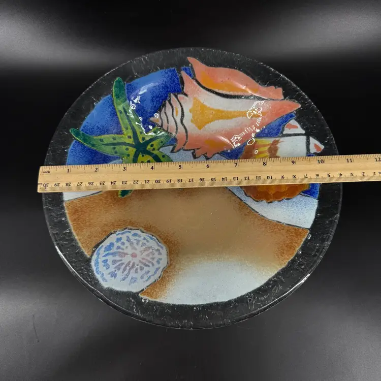 Width is approximately 10.5” No chips or cracks Is signed can be seen in the photos.