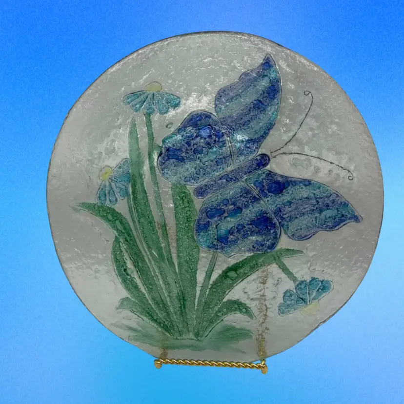 Featuring a large stunning butterfly and daisies on a round plate. Can be used as a serving bowl or for decor. In excellent condition!