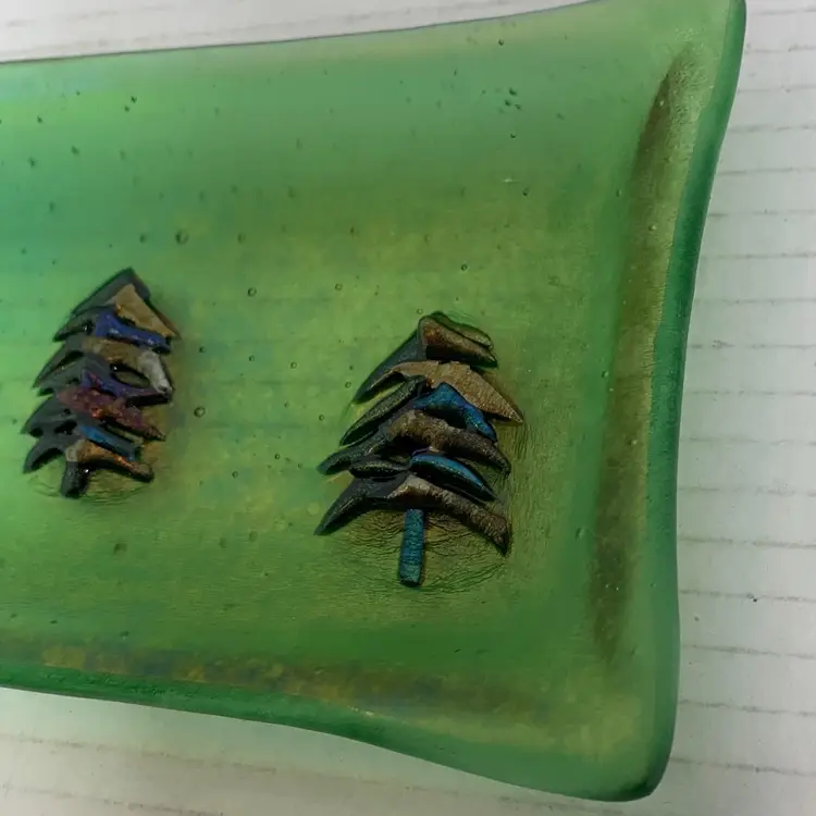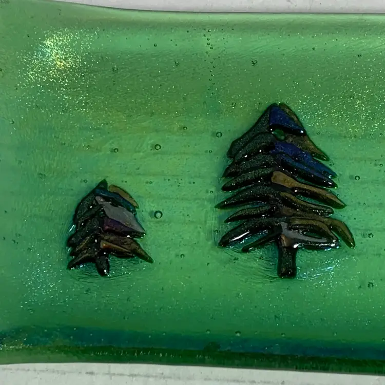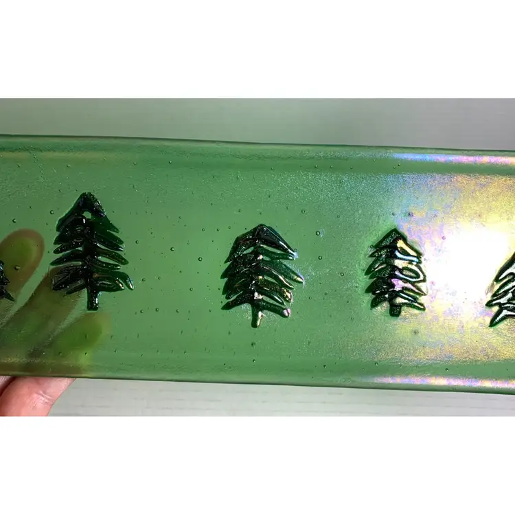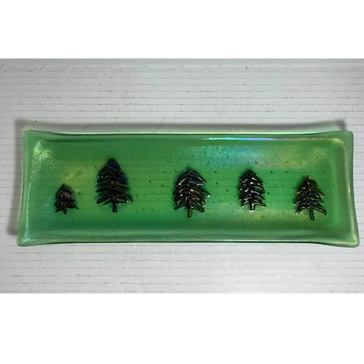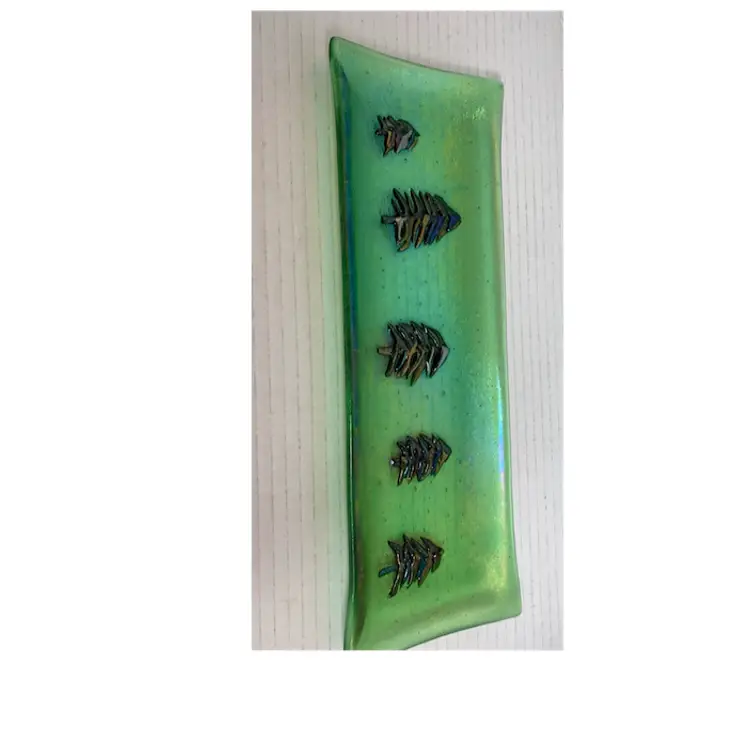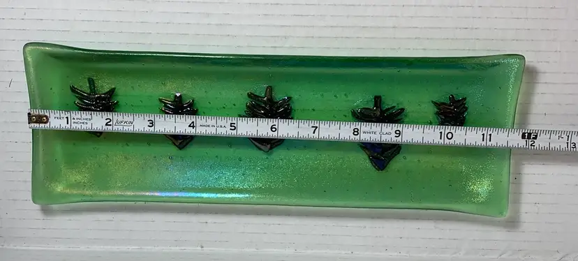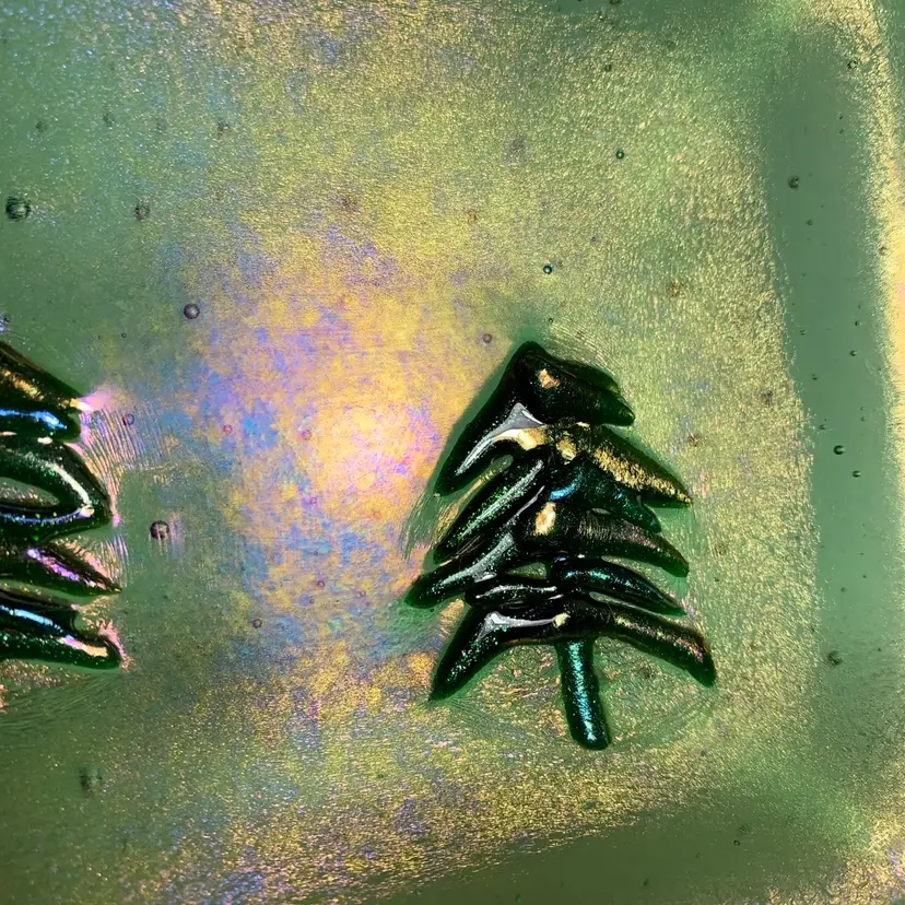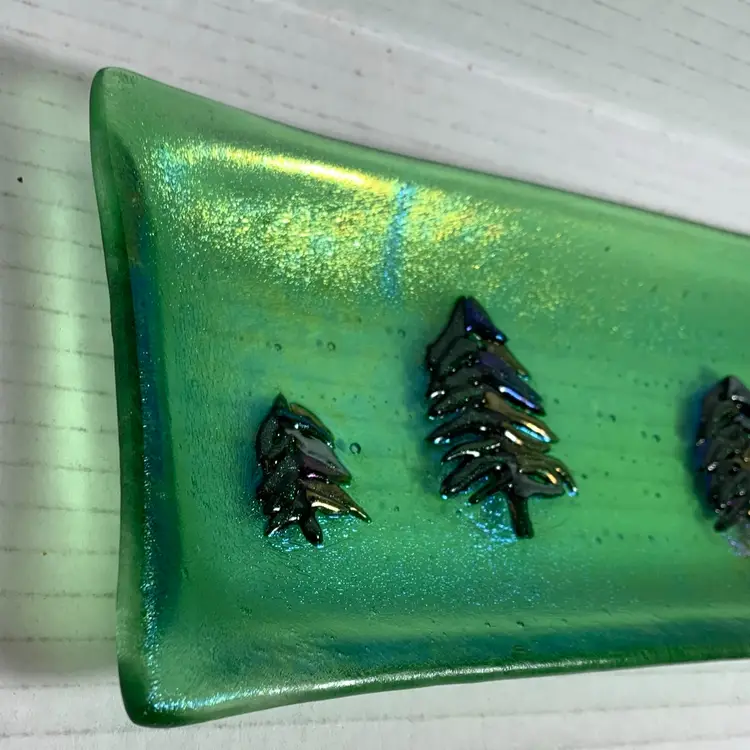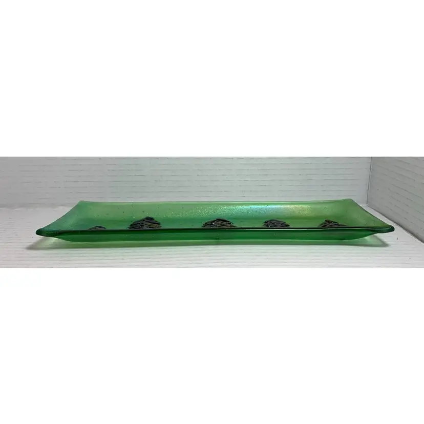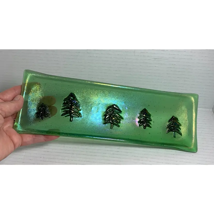 Beautiful glass tray. With no chips, cracks or repairs. See all photos for condition details and measurements. I tried to the capture the iridescence in the photos. Thanks for checking out my listings.