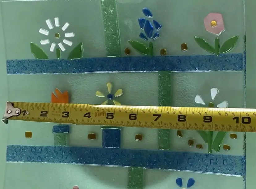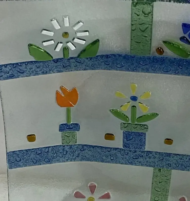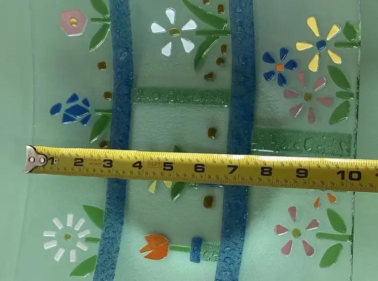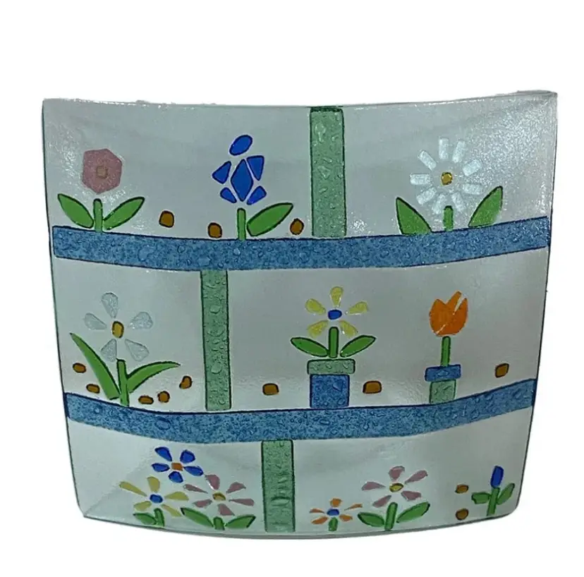 Multicolored fused slump art glass spring floral design plate dish tray 10 x 10.