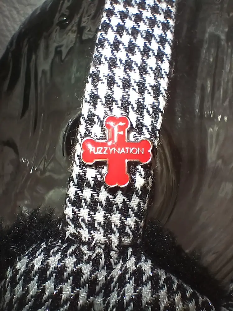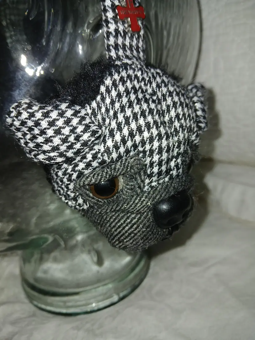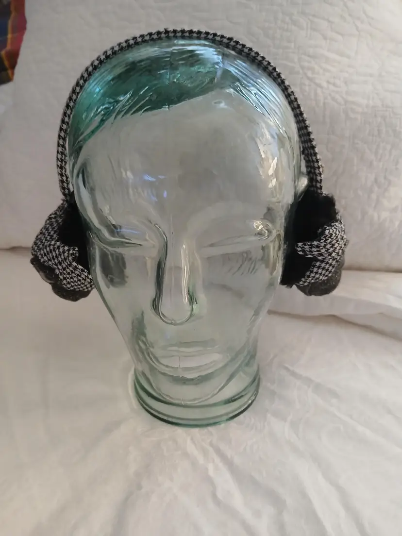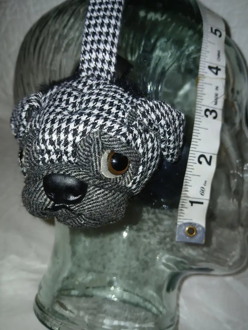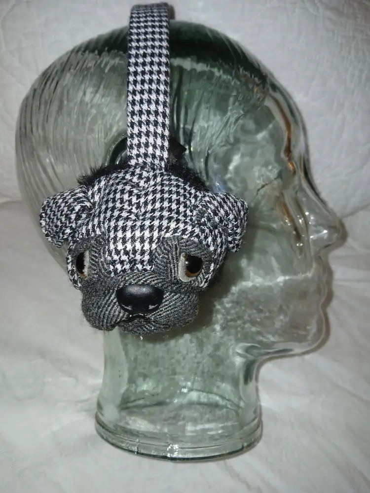BY FUZZYNATION TRENDING ADORABLE HOUNDSTOOTH AND FUR TEXTILE "PUG" EARMUFFS,PRELOVED A COUPLE OF TIMES IN NICE CONDITION