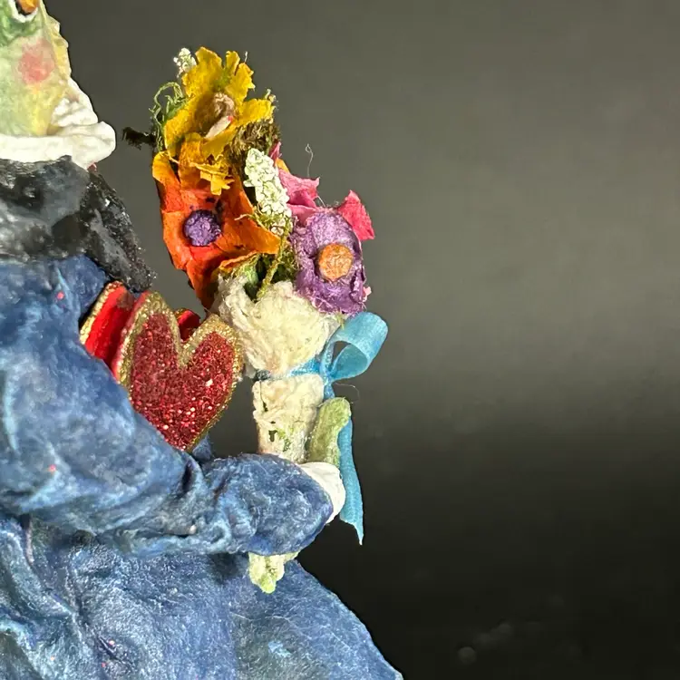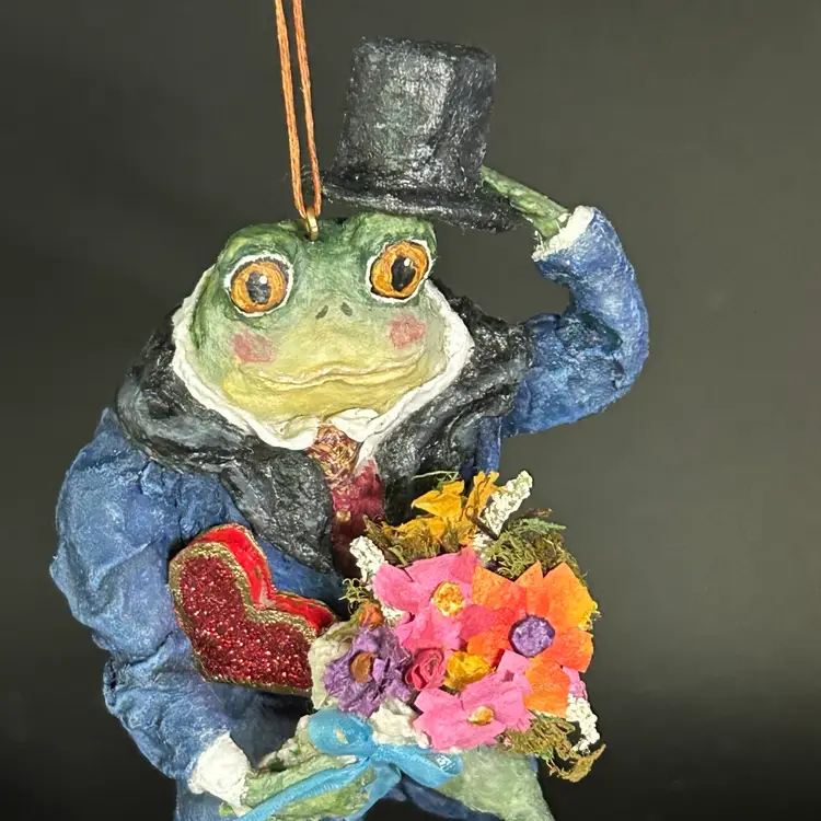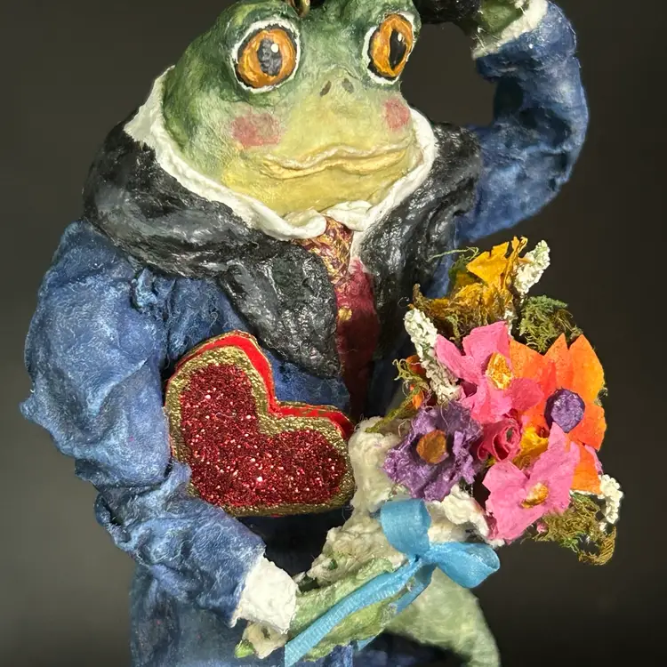 Spun Cotton Approx 3x5.5x2.25 Frog went a-courtin', and he did ride, Uh-huh, Frog went a-courtin', and he did ride, Uh-huh, Frog went a-courtin', and he did ride. With a sword and a pistol by his side, Uh-huh. Well he rode up to Miss Mousey's door, Uh-huh, Well he rode up to Miss Mousey's door, Uh-huh, Well he rode up to Miss Mousey's door. Gave three loud raps and a very big roar, Uh-huh ……. (and so onnnnn) *no guns or swords. Just flowers and chocolates ❤️