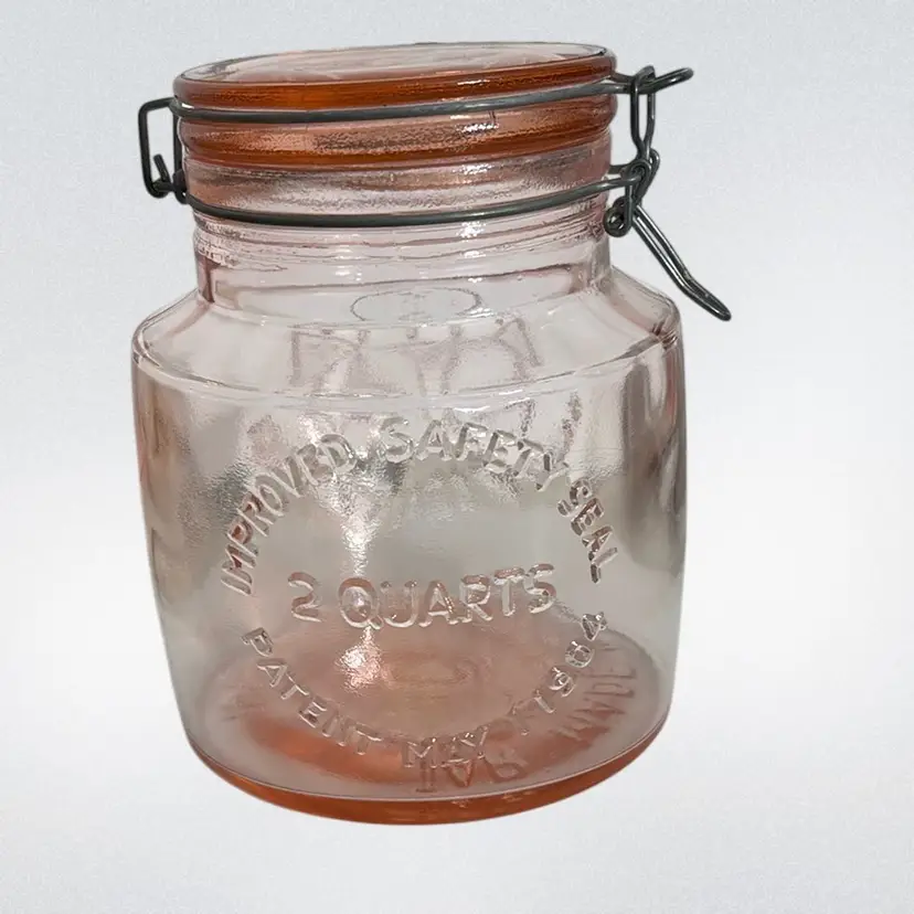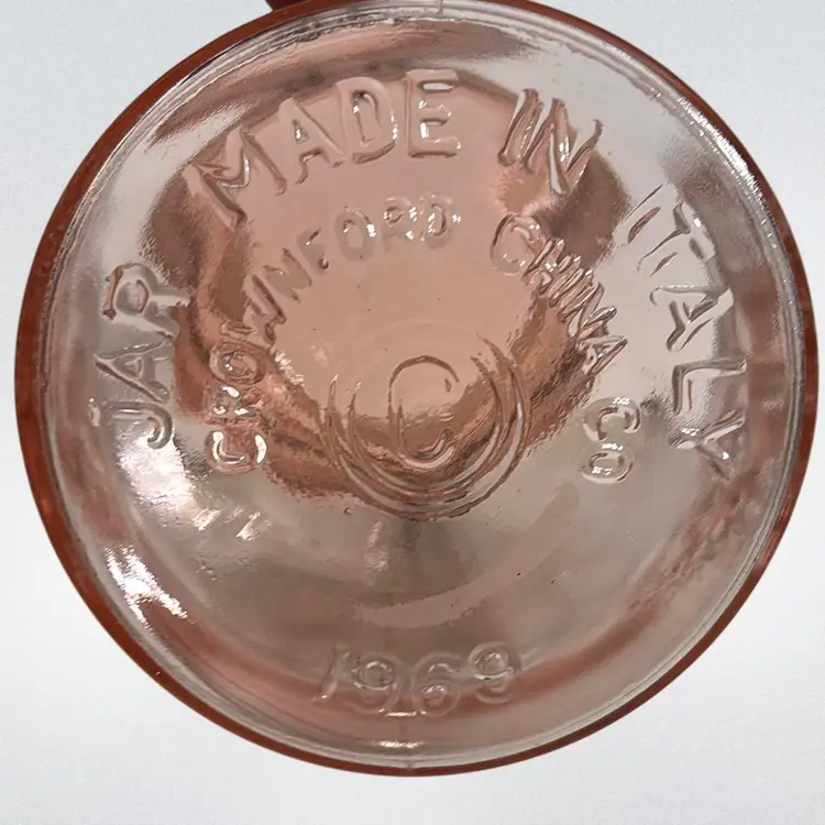 Made in Italy. No rubber seal. Mouth of jar does have some flea bites and is rough.jar has bubbles in glass. Amazing jar! 7” tall x 5-1/2” wide