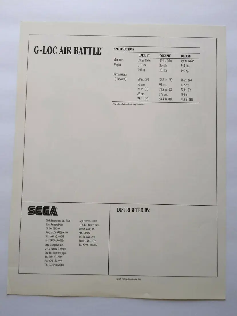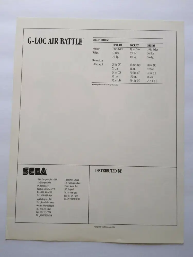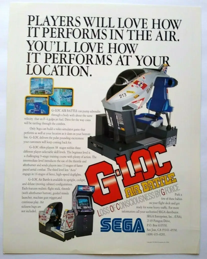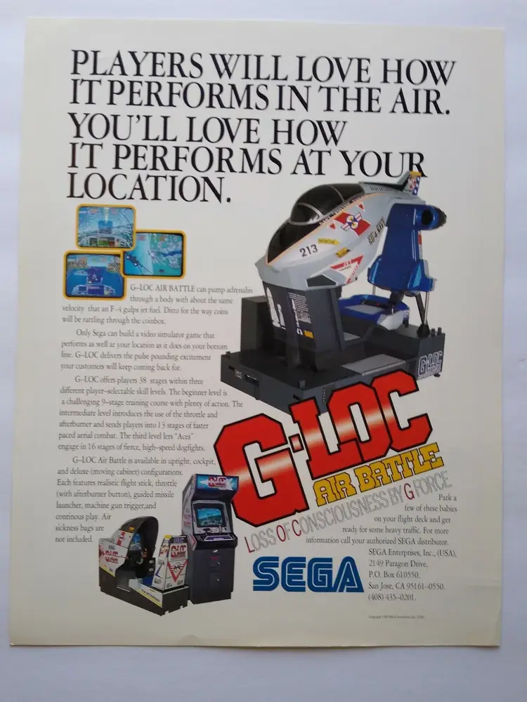 Material: Paper Arcade: Flyer Modified Item: No Country/Region of Manufacture: United States Original/Reproduction: Original Year: 1990 Game Title: G-Loc Brand: SEGA