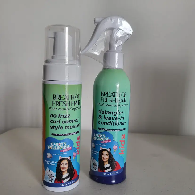 Items include: ~ Breath of Fresh Air no frizz curl control style mousse (never used) ~ Breath of Fresh Air detangler & leave-in conditioner (in original packaging)