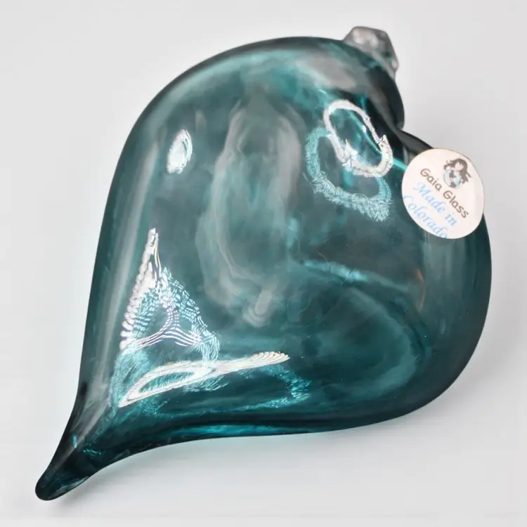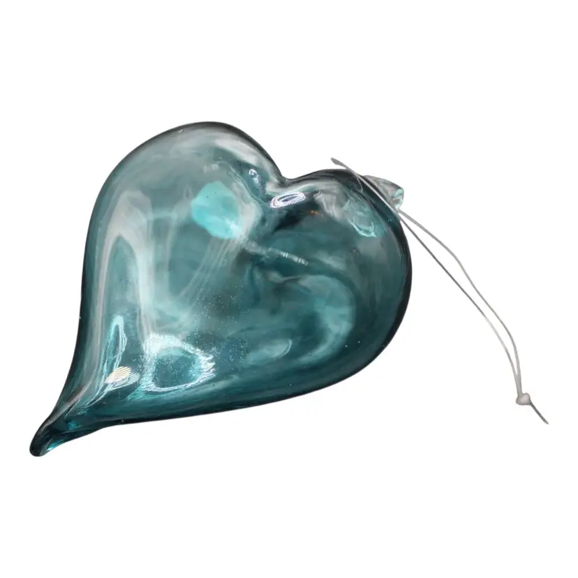 Gaia Glass Hanging Heart Aqua Blue Colorado 5 1/4”x4” signed KM Bogle. No chips or cracks.