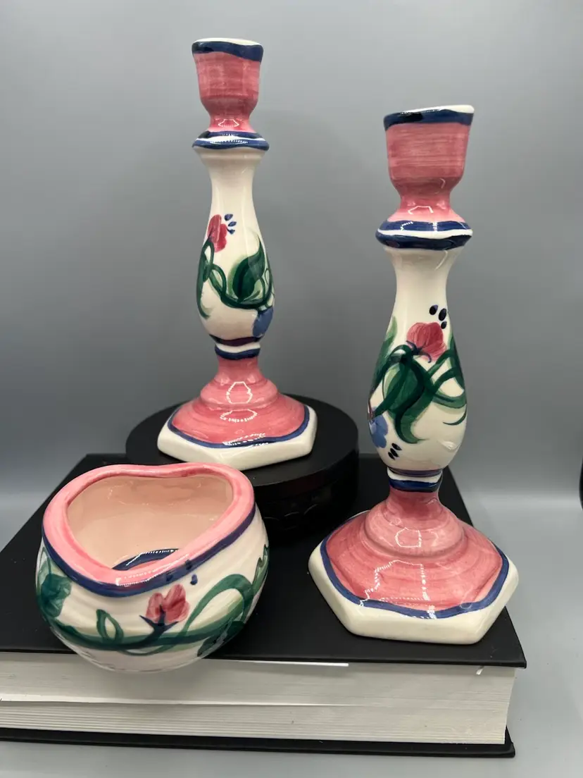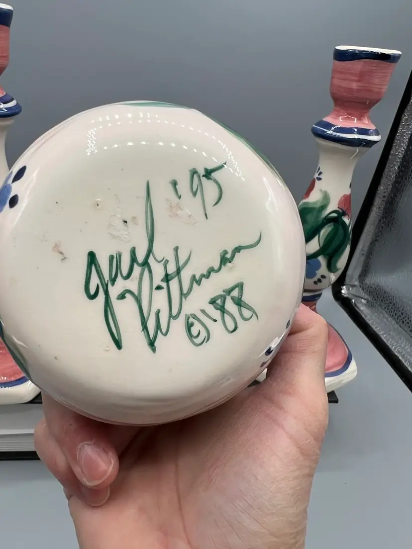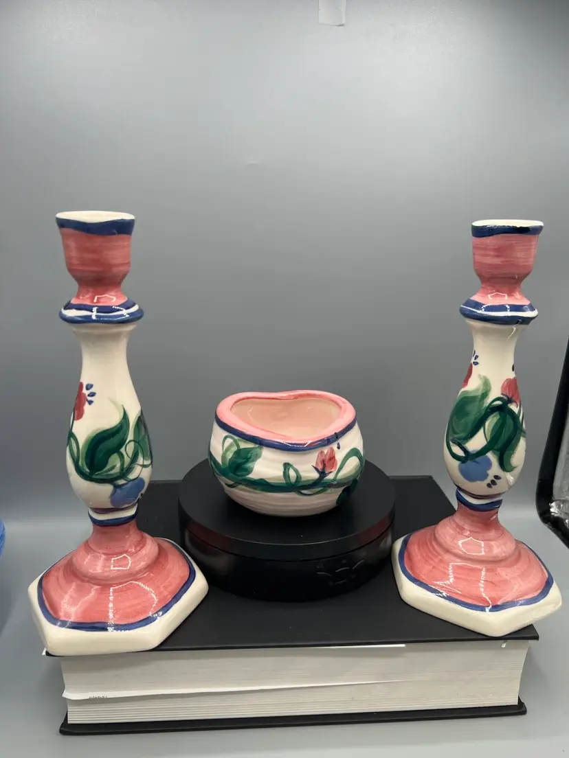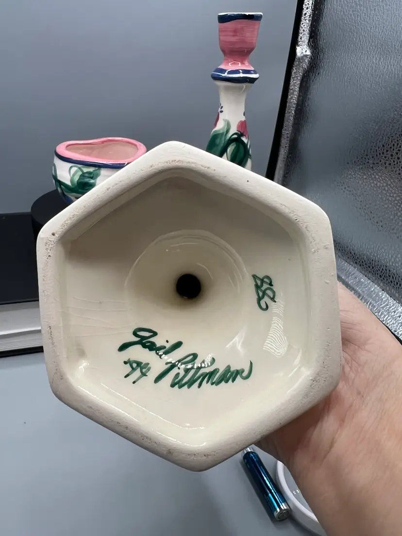This is a vintage Gail Pittman candle holder and a small heart shape bowl, signed and no flaws.