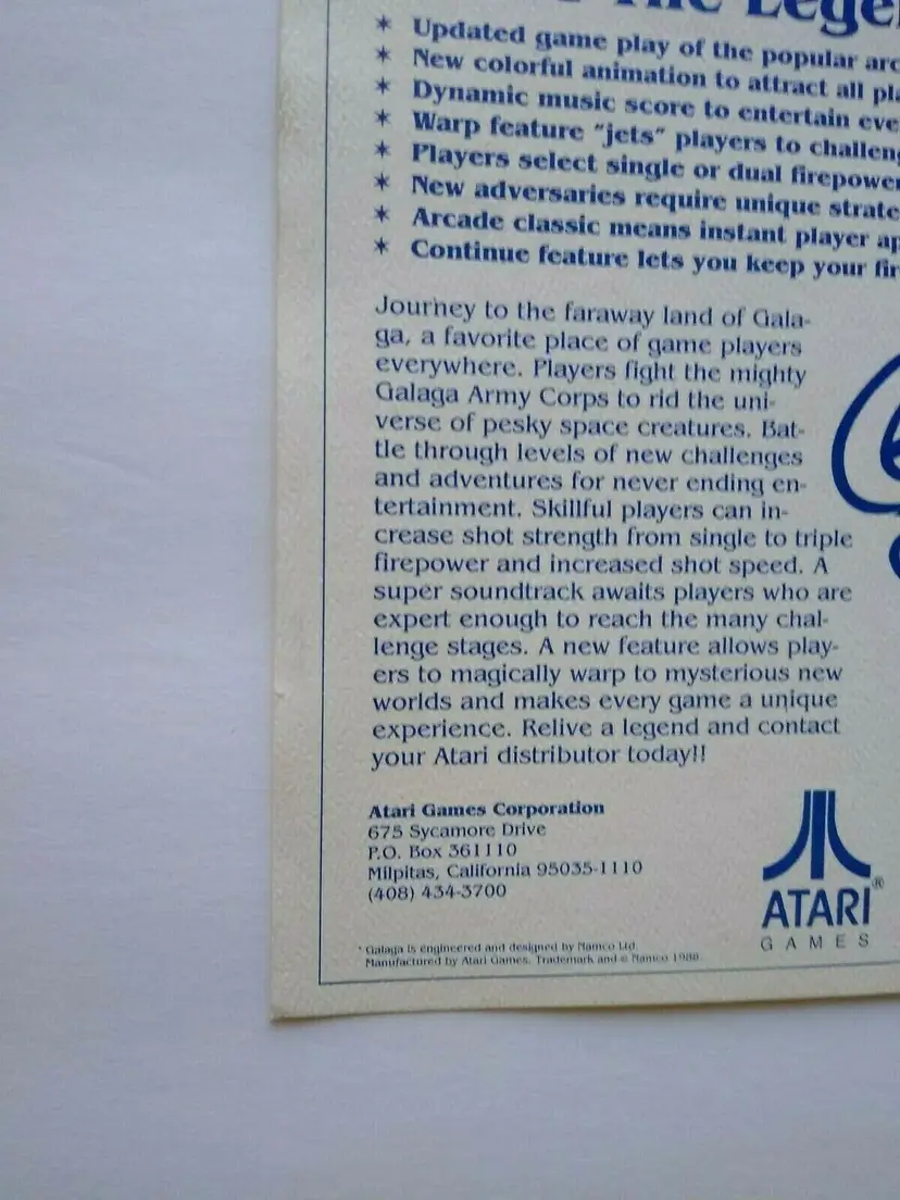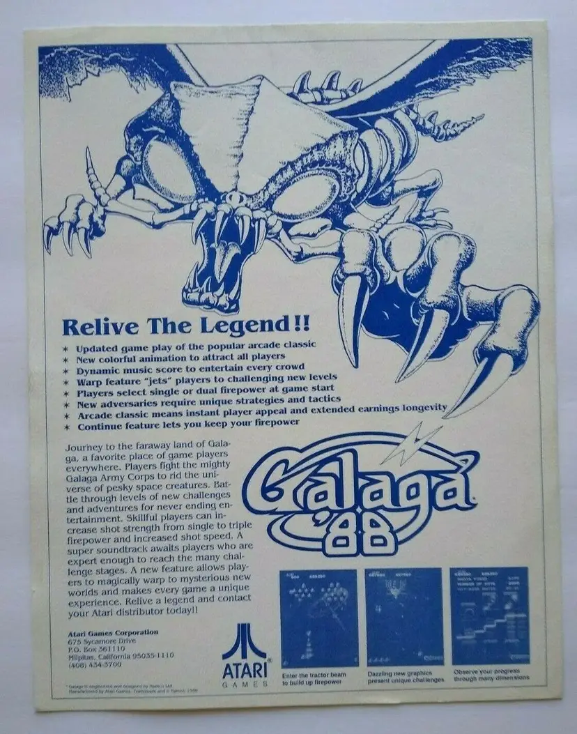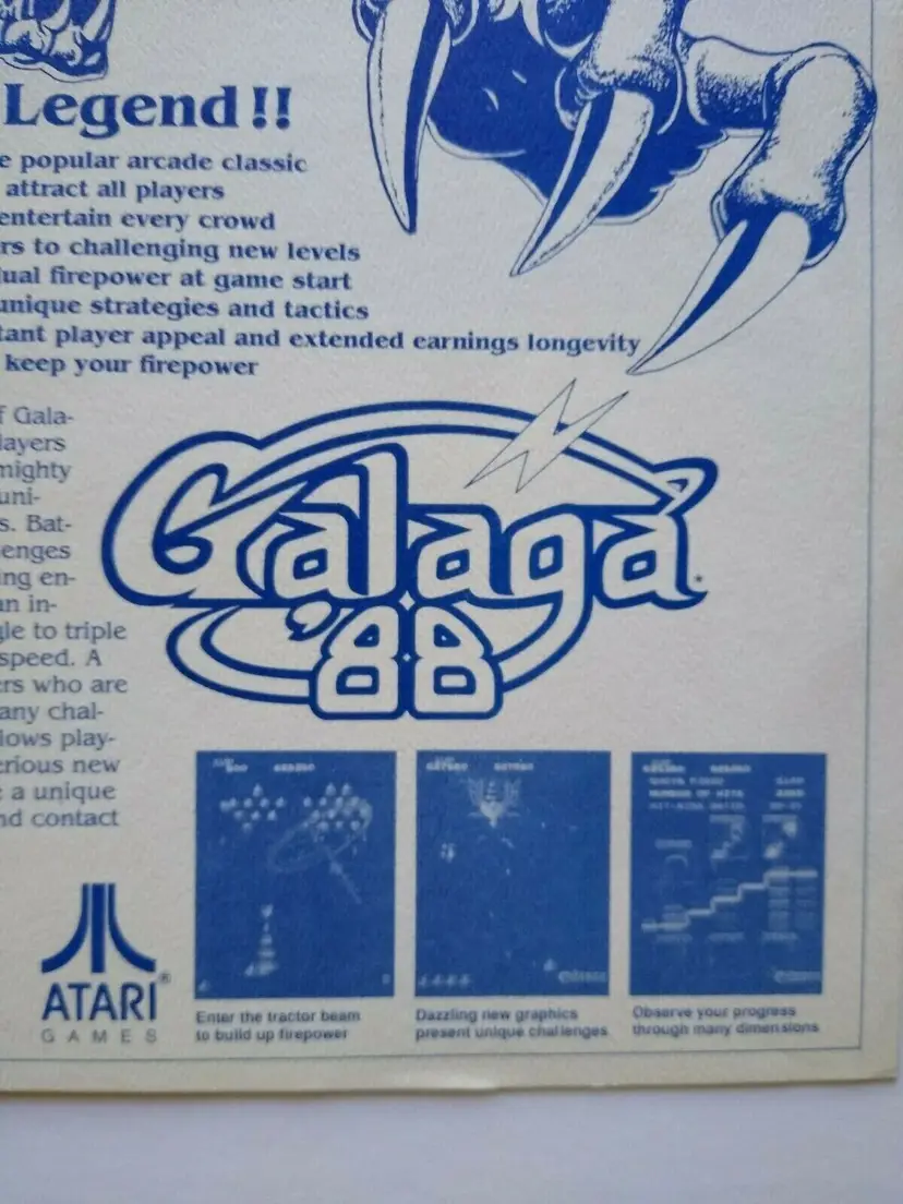 Arcade: Flyer Modified Item: No Country/Region of Manufacture: United States Original/Reproduction: Original Year: 1988 Game Title: Galaga 88 Brand: Atari