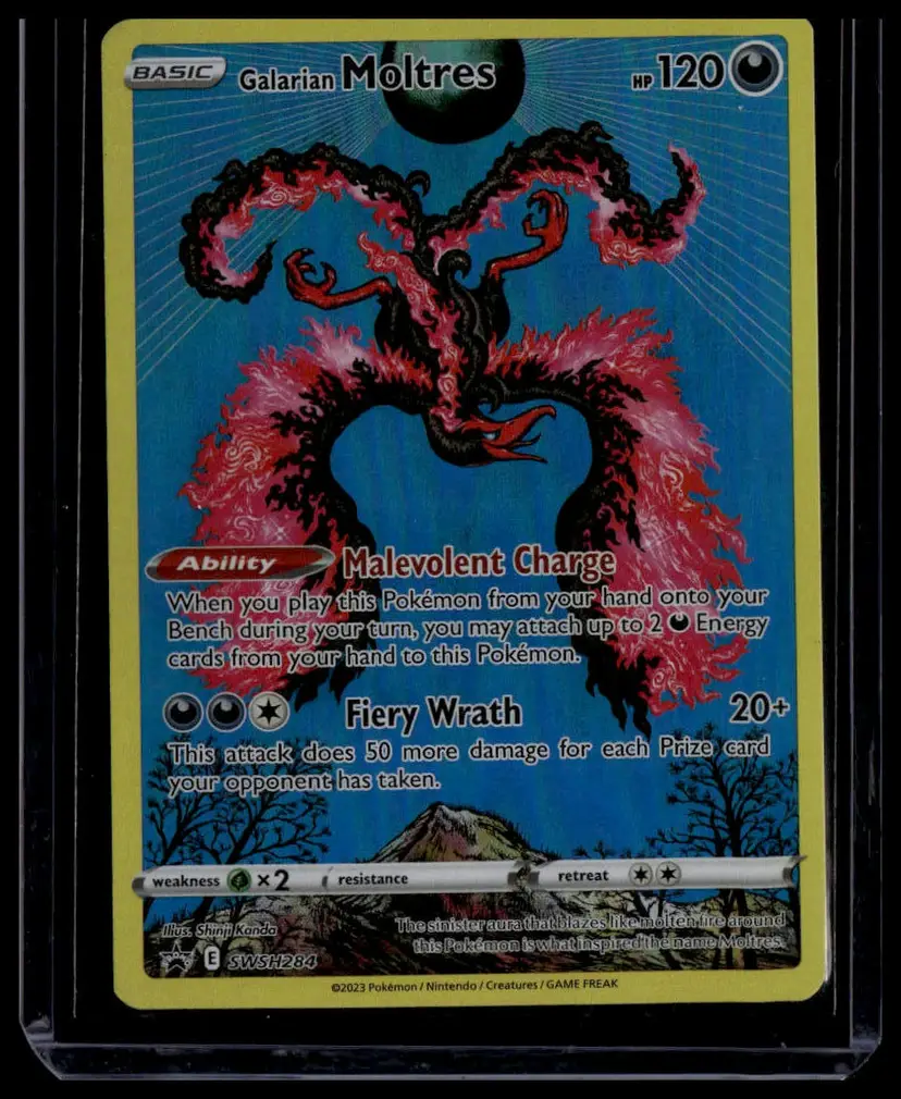Add some heat to your Pokémon TCG collection with this Galarian Moltres from the Chilling Reign set! Featuring the Malevolent Charge ability and Fiery Wrath attack, it's a must-have for any Pokémon fan. Perfect for both collectors and players.