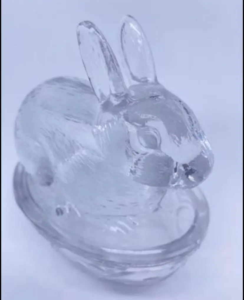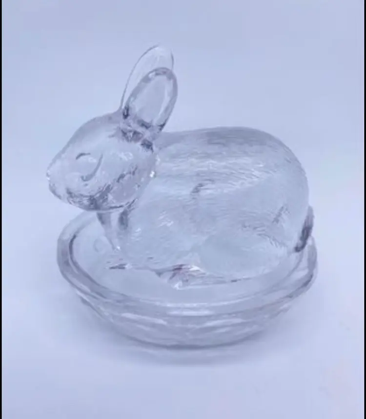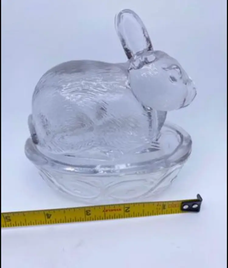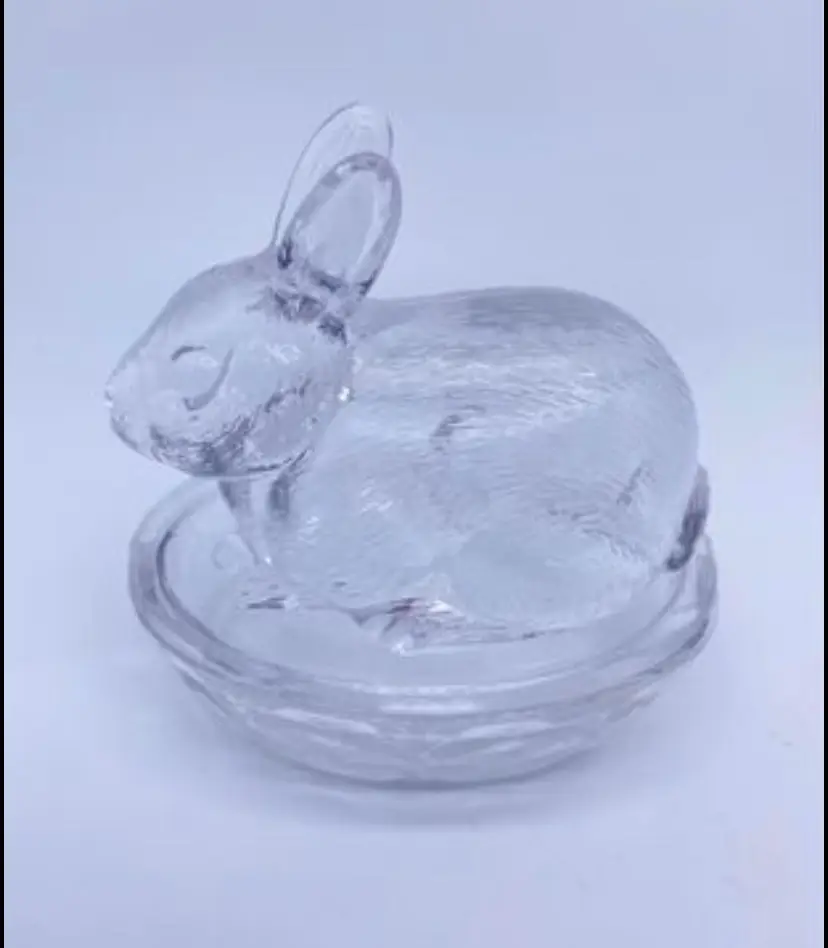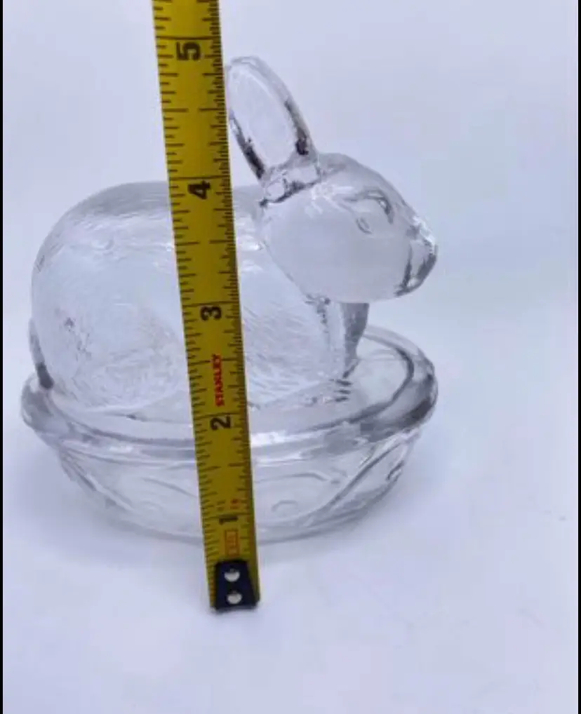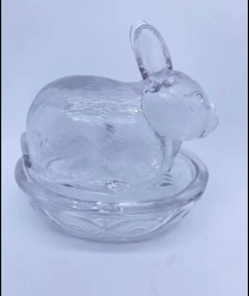 Galerie clear glass bunny rabbit on nest basket trinket dish. No chips or cracks. Antianal