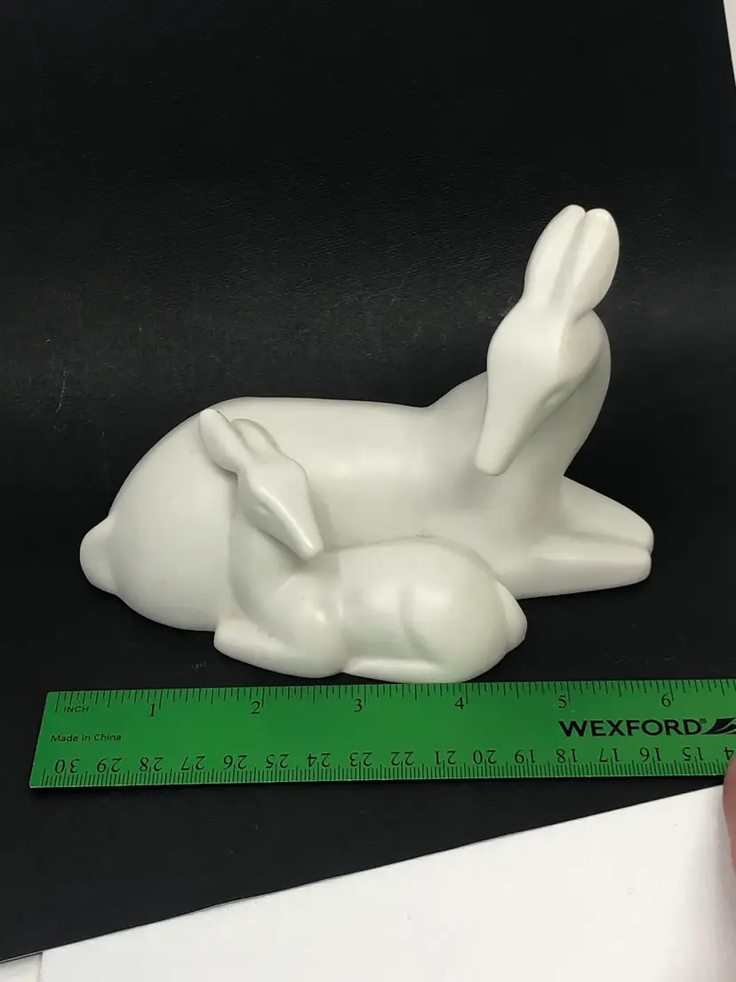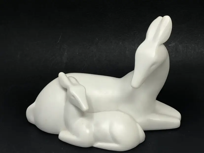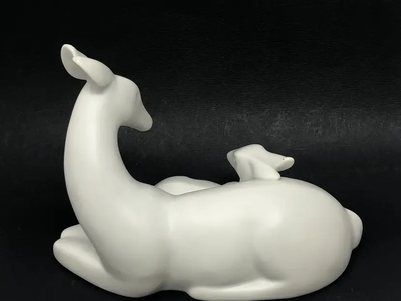 6" x 4" white ceramic figurine of mother deer and baby. Marked Gallery Originals 1984. No chips or cracks